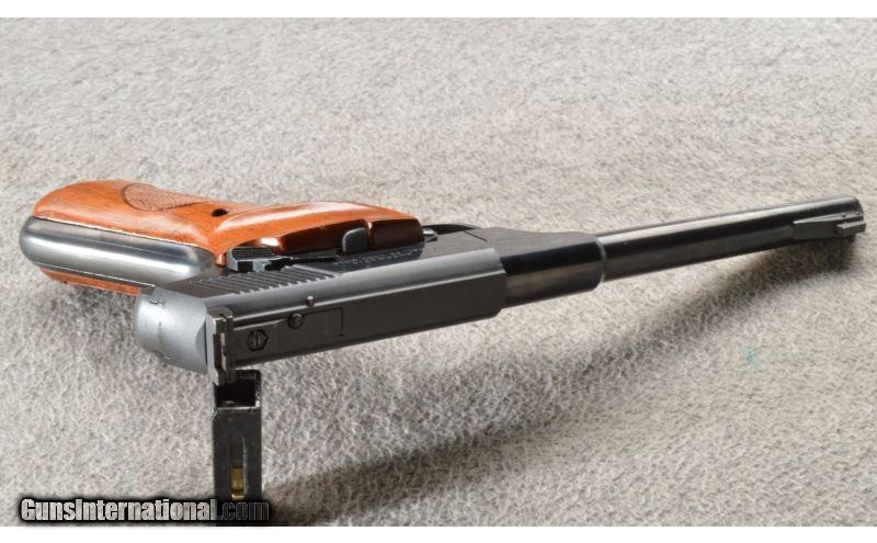 Description: This is a very nice and close to new looking Colt Woodsman 22 LR pistol. The pistol was made in 1974 and comes in the foam box with the factory paperwork. There are a couple of tiny marks you have to looks for in the correct light bit otherwise this nice Colt is as new. There is no blue wear and the grips are excellent. SOLD Manufacturer: 1974 Caliber Info: .22 LR. Chambers: Semi-auto. Metal Condition: Excellent. Wood Condition: Excellent. Bore Condition: Bright and shiny. Barrels: 6 inch with sights. Triggers: Single blue. Stock: Checkered walnut grips. Weight: 30 Oz. Sights: Adjustable rear and a Partridge style front. Extras: Comes in the foam box with the factory paperwork. Item Location: Owatonna, MN |