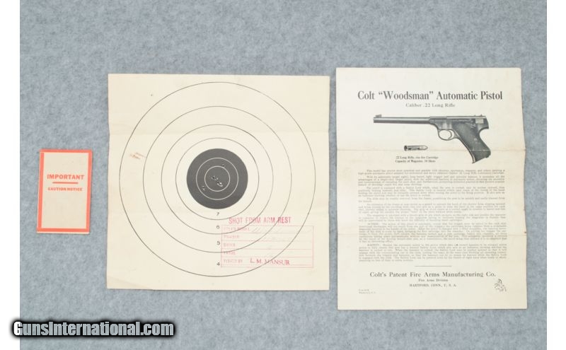 Description: Used SOLD Manufacturer: 1937 Caliber Info: .22 LR Metal Condition: Excellent Wood Condition: Excellent Bore Condition: Clean and sharp Barrels: 6 5/8 Triggers: Grooved, blued steel Stock: Checkered walnut Weight: 28 oz. Sights: Blade Front: Adjustable Notch Rear Sight Extras: This Exceptionally clean pistol is with its Original Box with Users Manual, Target & Cleaning Brush Item Location: Sun Prairie, WI |