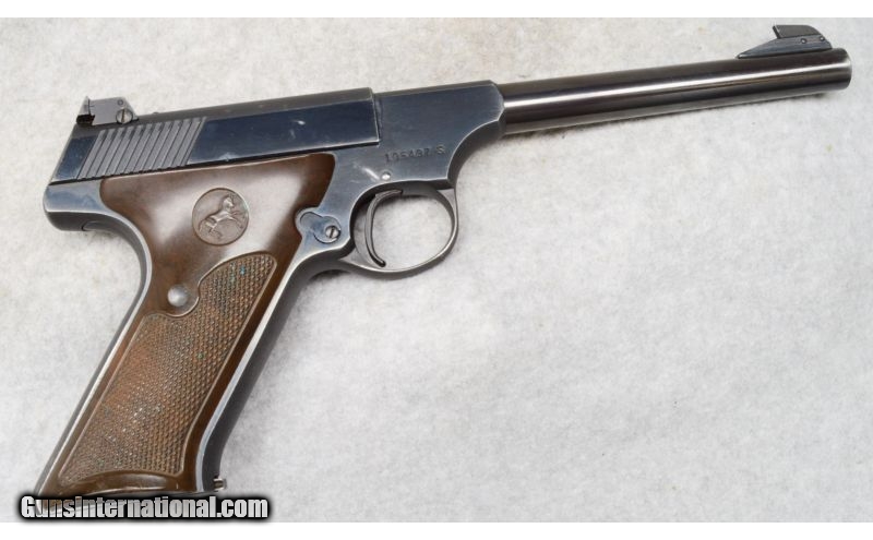 Description: SOLD Caliber Info: .22 LR Metal Condition: Good with scratches and finish wear Wood Condition: Good with handling marks. Bore Condition: Shiny with good rifling. Barrels: 6 Stock: Checkered brown plastic grips. Weight: 32-ozs. Sights: Fixed front blade and rear blade. Item Location: Fort Worth, TX |