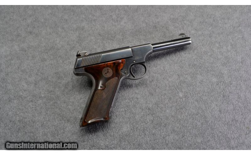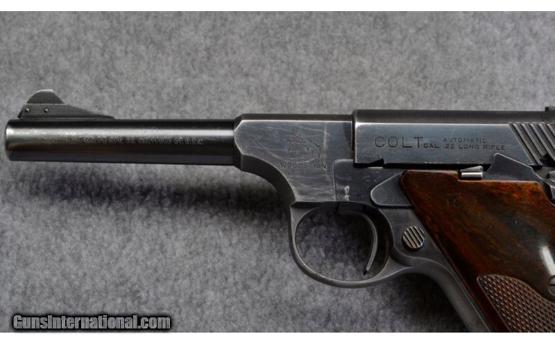 Description: SOLD Manufacturer: S/N 7660-S Caliber Info: .22 LR Metal Condition: Good. Worn bluing from usage. Bluing wear at Colt logo. Bore Condition: Very Good. Barrels: 4.5 Inch Triggers: Grooved target trigger Stock: Bakelite" grips Weight: 1 lb. 14oz. Sights: Adjustable target sights Extras: Does not have a magazine. Has a name etched on bottom of grip. Item Location: Springfield, OR |