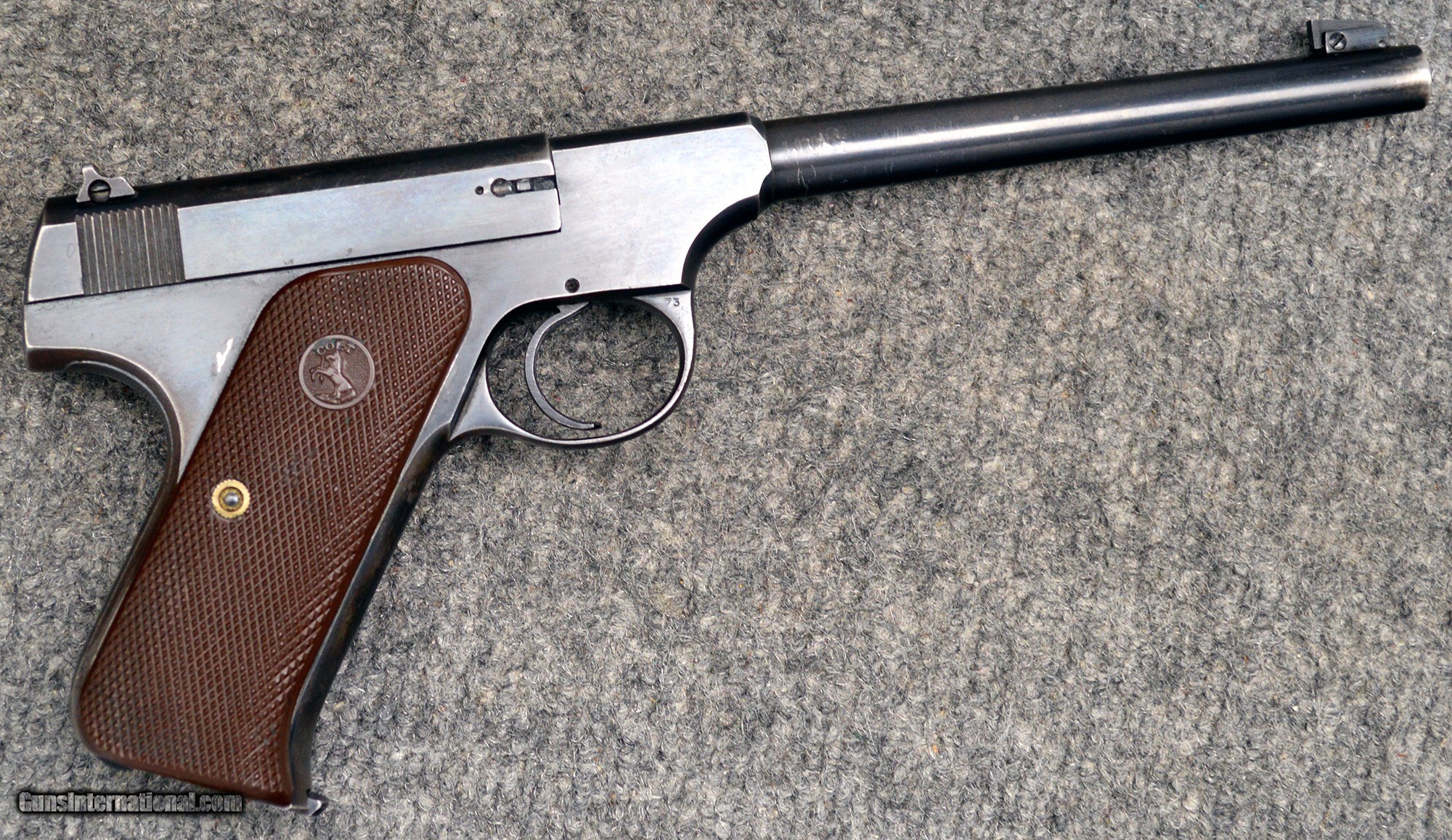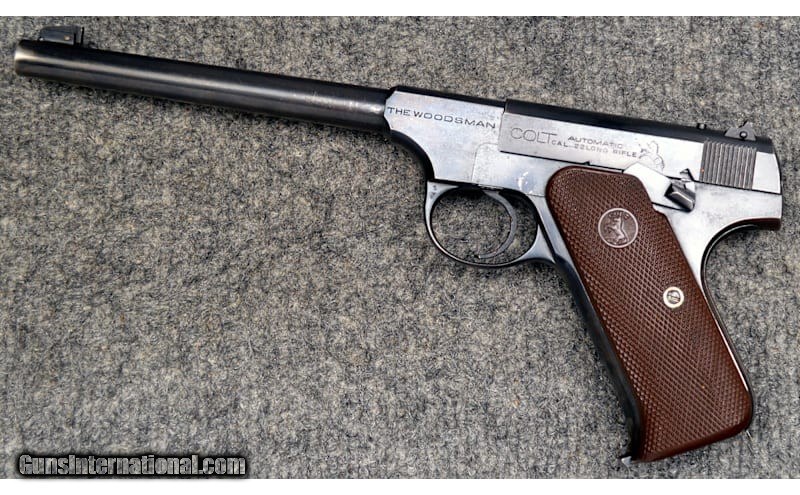 Description: For your consideration, a Colt Woodsman chambered in .22 Long Rifle. This piece dates to 1942 and features a set of period correct "Coltwood" composite grips and an original two-tone magazine. .22 Long Rifle SOLD Metal Condition: Very Good Wood Condition: Excellent Bore Condition: Excellent Barrels: 6.5 Triggers: Serrated Face Weight: 1.75 lbs Sights: Iron Sights Item Location: Hamburg, PA |