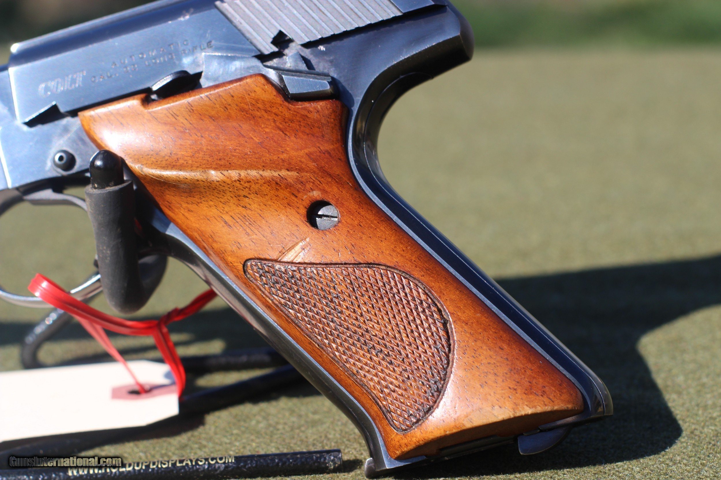 Description: Manufactured 1967... serial # 2268xx 4 1/2" barrel with adjustable sights Excellent bore 99% bright factory bluing 98% grip condition Correct magazine Quality gun recently acquired from a prominent Colt collector $ 749 + Shipping SOLD |