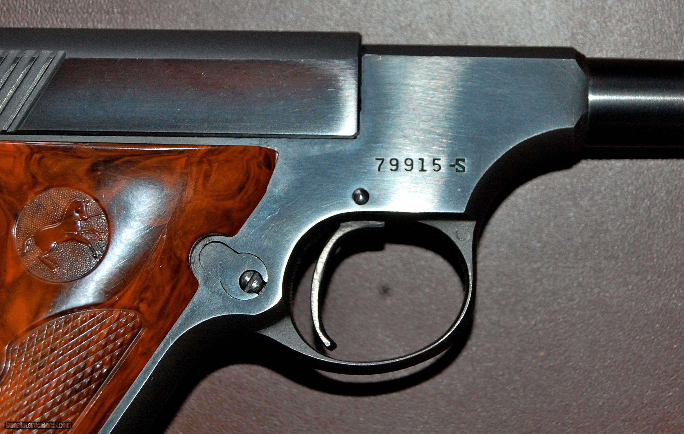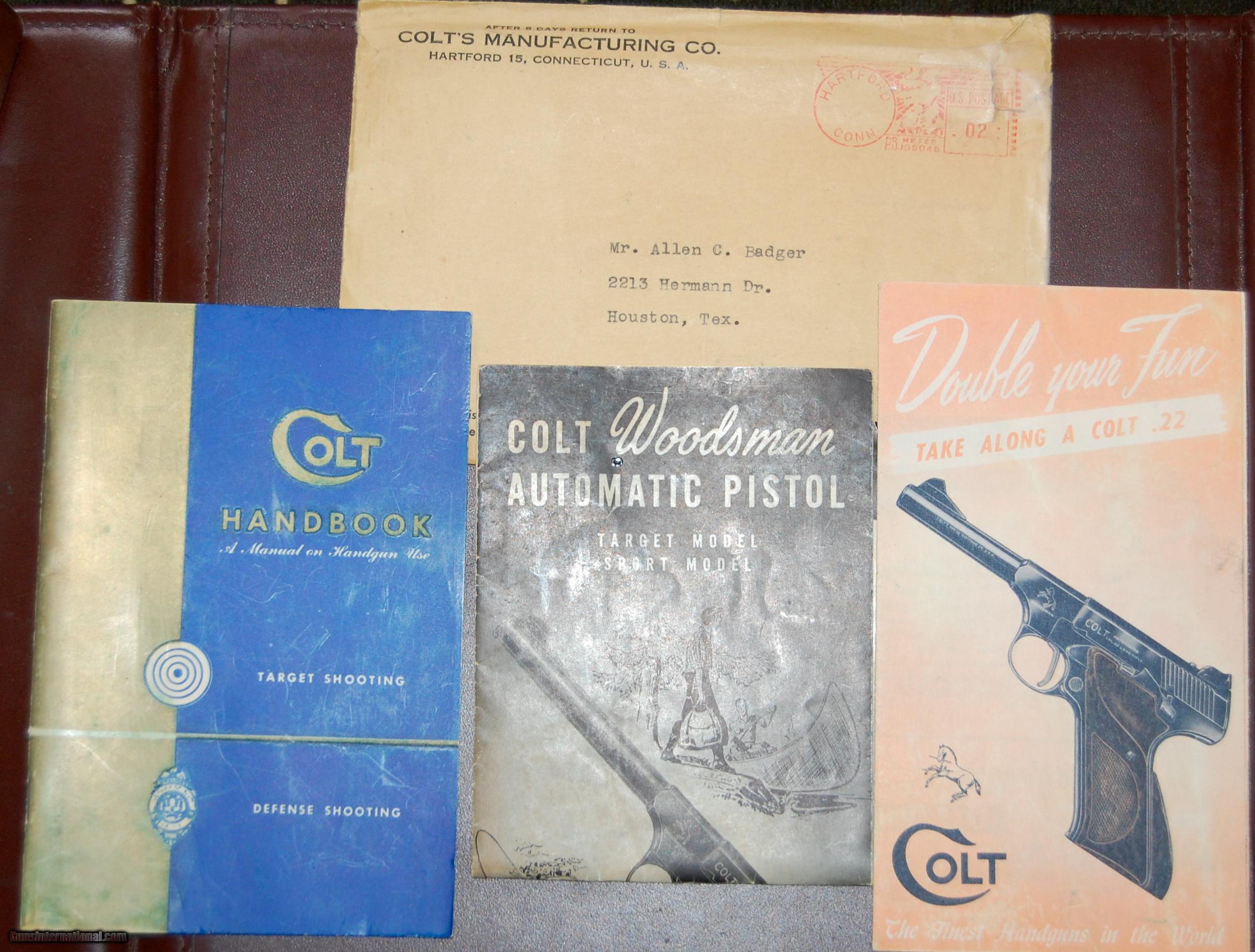 Description: Colt Woodsman 2nd model sport.Built in 1950,this pistol appears to be unfired and retains 100% of the original finish.It is boxed in the original box with 2 magazines,3 Colt manuals,and the original wrapping paper.Very hard to find in this condition.C&R eligible. SOLD Curio/Relic: Yes Manufacturer: Colt Model: Woodsman Sport Serial Number: 79915-S Caliber Info: 22 long rifle Metal Condition: n Bore Condition: new Action: semi auto Manufacture Date: 1950 |