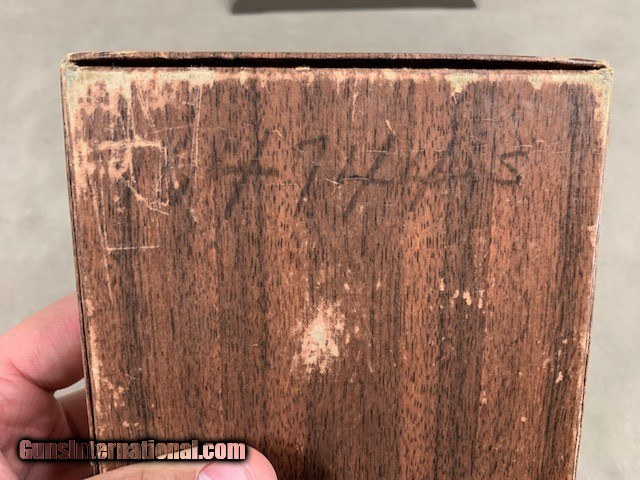 Description: This is an original Colt Woodsman 6 Inch Target Model in mint condition with the original box, papers, etc. even an old Colt envelope with a 3 cent postage mark on it and enclosing 2 brushes and a sight adjustment screwdriver. Pistol has been fired but is perfect and I think it would be darn hard to find a better third model target than this one. Serial range 16474x-S. SOLD Curio/Relic: Yes |