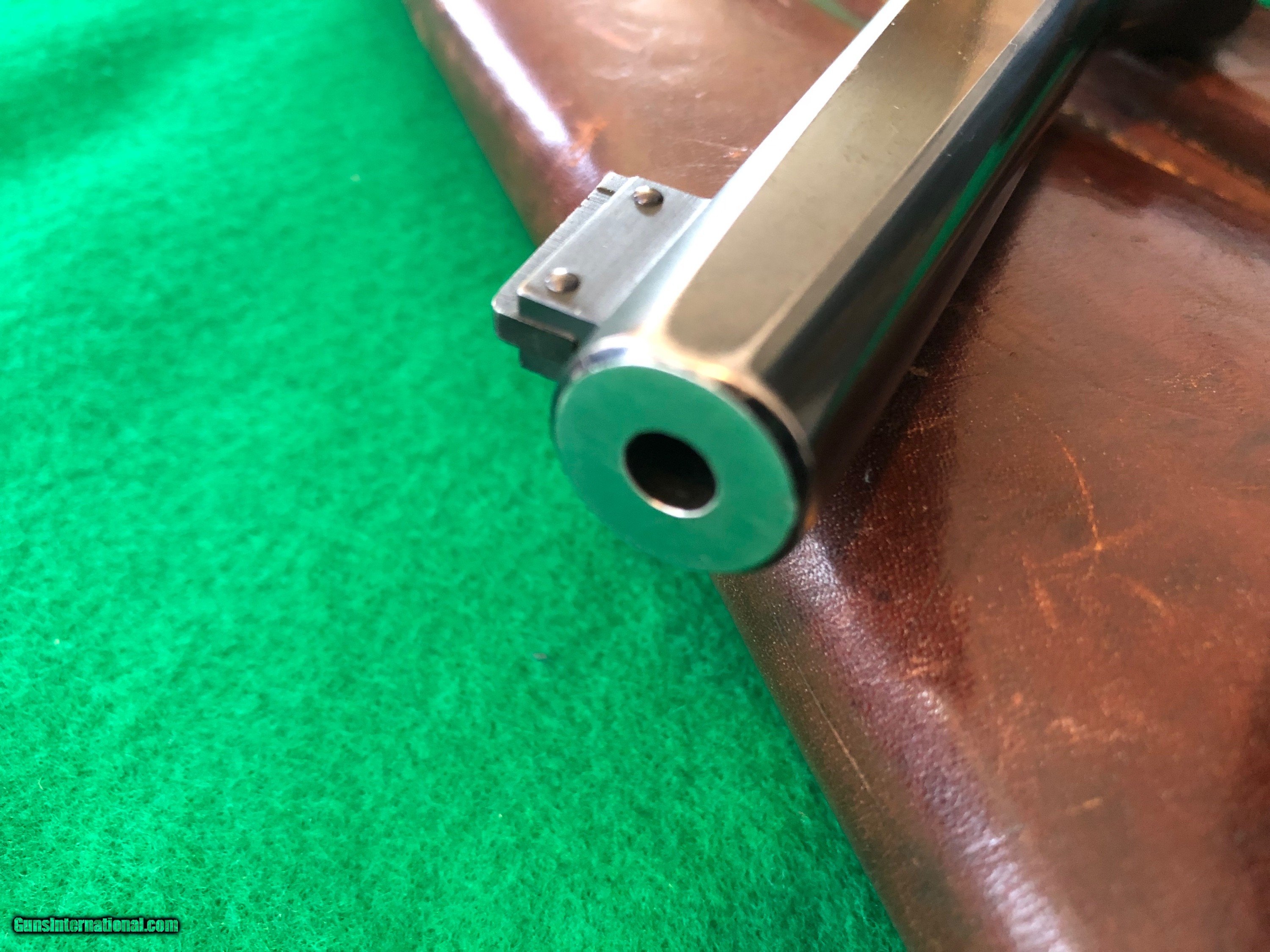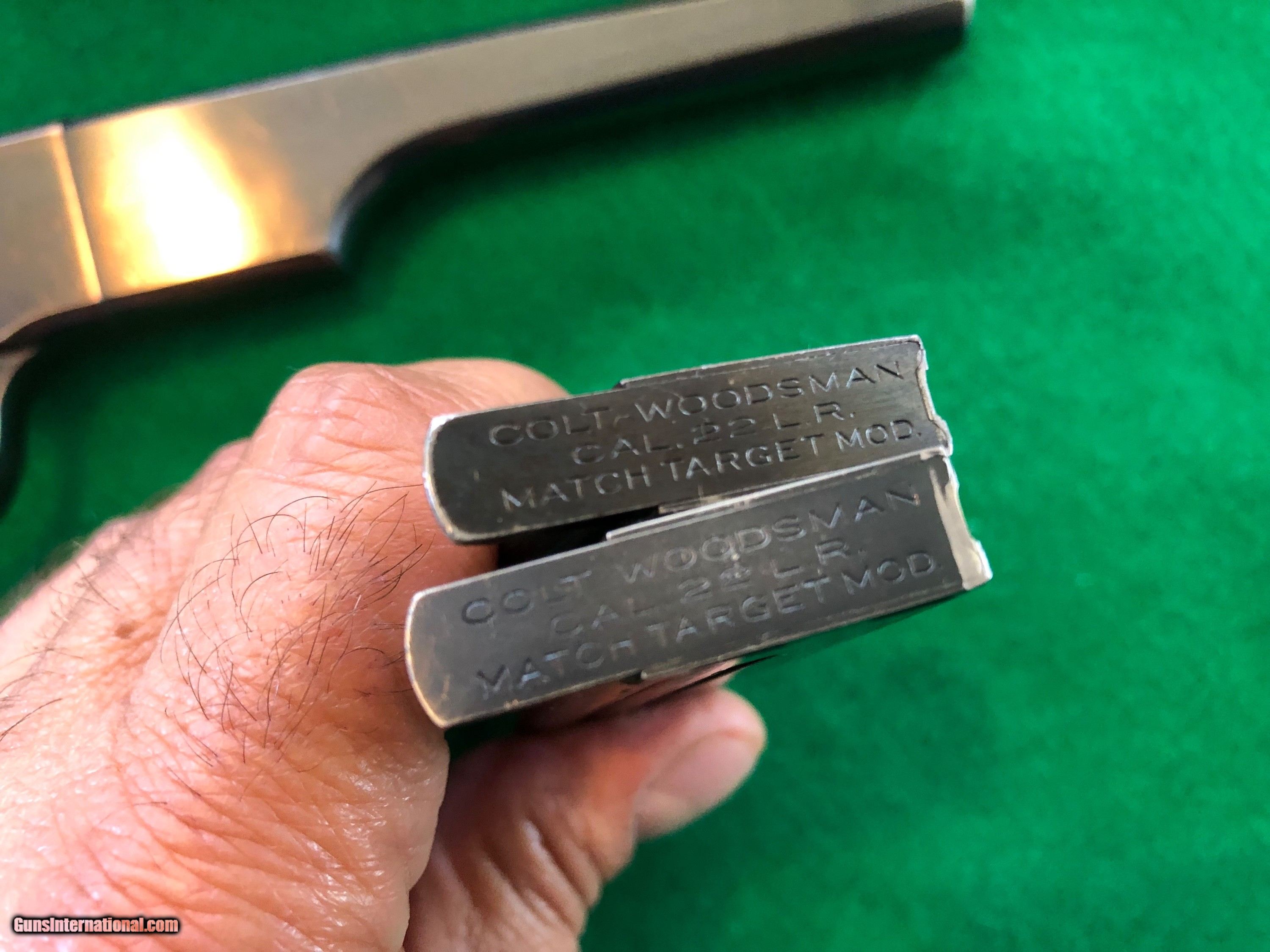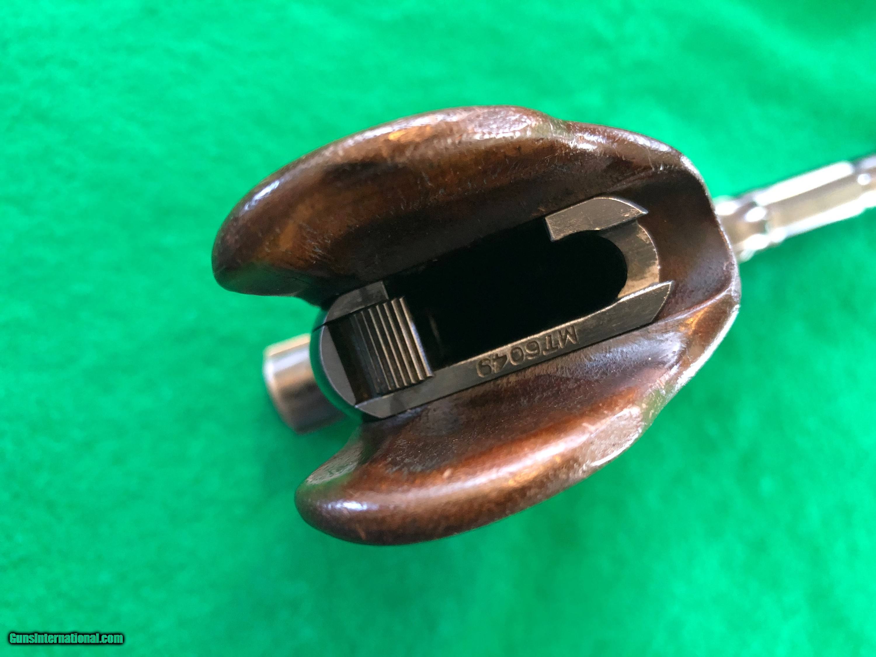Description: Neat package, with a cool holster. Lightly used pistol in very good condition. Beautiful bore. Two factory correct mags. Attractive, nicely intact one piece grips. Factory wood and metal finishes, with a bit of honest wear. Ser#MT6049 made 1938 "The Woodsman" Match Target Email or call for more info. CA sales welcome. SOLD Curio/Relic: Yes |