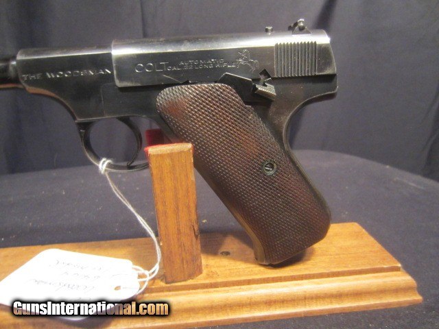Description: COLT WOODSMAN FIRST MODEL SERIAL NUMBER 64144 BARREL LENGTH 6 1/2" ALL ORIGINAL AND UNALTERED. FACTORY BLUE 75% MOST LOSS ON FRONT AND REAR STAPS. TWO CLIPS BUT THEY ARE AFTER MARKET. NEED MORE INFORMATION ALWAYS BEST TO CALL OUR OFFICE 716-941-3946 SOLD Curio/Relic: Yes |