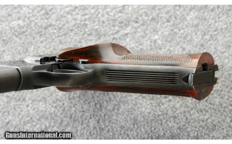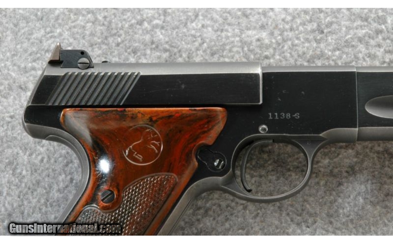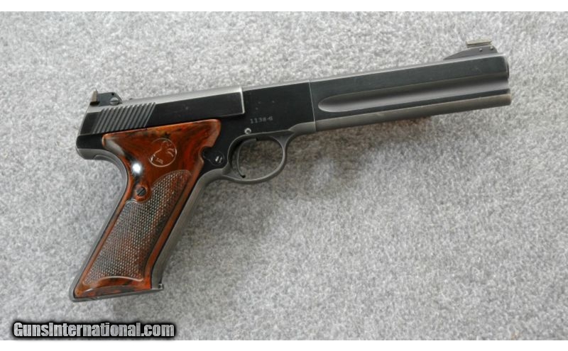 Description: SOLD Manufacturer: 1949 Caliber Info: .22 LR Metal Condition: Good with some scratches, thinning finish on the backstrap and wear on the sharp edges Bore Condition: Very good, sharp and bright Barrels: 6 inch Weight: 42 oz. Sights: Adjustable rear, blade front Item Location: Lehi, UT |