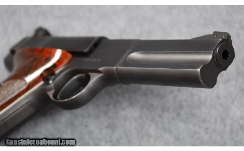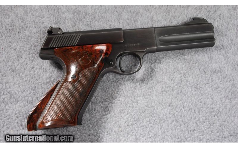 Description: SOLD Curio/Relic: Yes Manufacturer: 1950, early Second Series Woodsman Caliber Info: .22 LR Metal Condition: Very minor handling marks. Wood Condition: Insignificant handling marks Bore Condition: Bright with strong rifling Barrels: 4 1/2 Stock: Plastic grip panels in VG condition Weight: 36 Oz. Sights: Fully adjustable notched rear sight. Ramped front blade. Extras: Box Item Location: Green Bay, WI |