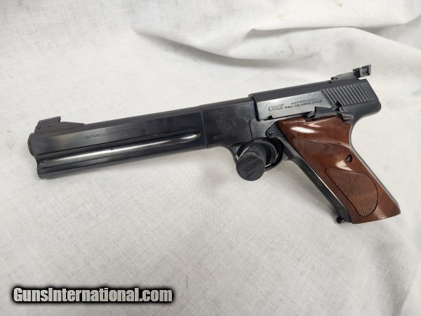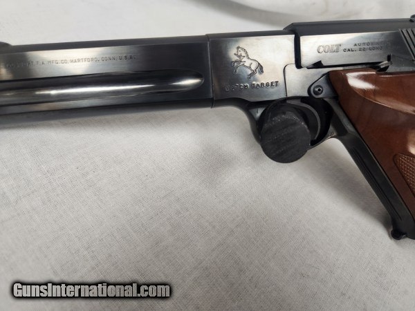 Description: Guns Listing ID: 1316463 This is a beautiful Woodsman Match Target 3rd series. Approximate manufacture date of 1973. It has a near perfect blue finish with no wear marks. It has NOT been re-blued. This is original finish. It has has the flat black top of the fluted slab side barrel toped with an adjustable rear sight and pinned front. Comes with 1 Colt stamped magazine. Bore is bright and rifling is sharp. Would be a great addition to any Cot collector, or would prove to be a great shooter at the range. SOLD Manufacturer: COLT Model: WOODSMAN MATCH TARGET Caliber Info: .22 LR Condition: Used - Non-Certified Barrels: 6 BARREL Finish: BLUED |