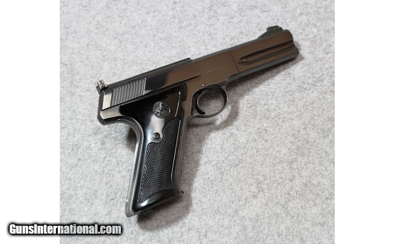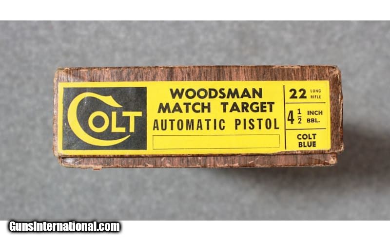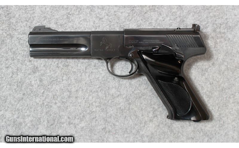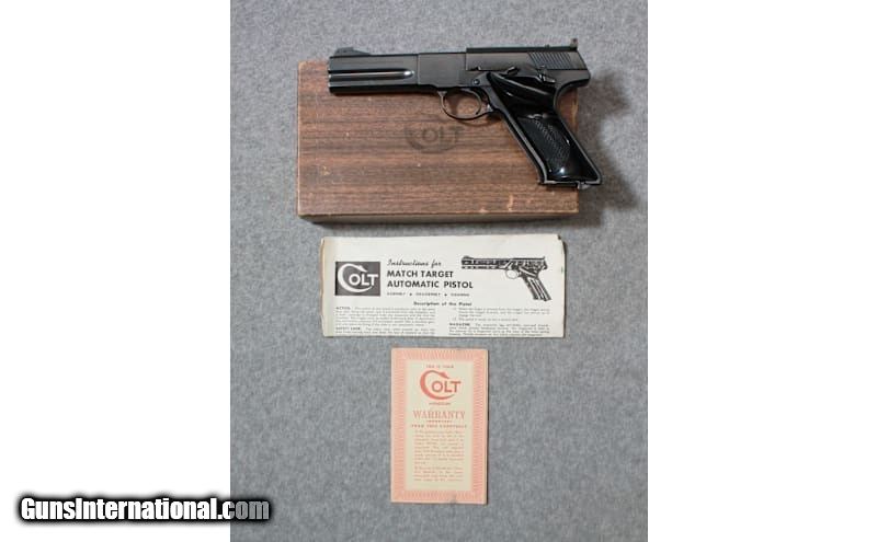 Description: Colt Woodsman Match Target semiautomatic pistol, chambered in .22 LR. It has a 4.5" barrel with a pinned black blade front sight, and an adjustable black u-notch rear sight. The original grip panels have the Colt insignia on the right side. Includes the original box, owner's manual, warranty card, and one magazine. Free shipping to any Bass Pro Shops or Cabela's store. .22 Long Rifle SOLD Barrels: 4.5 inch Weight: 35 oz Item Location: Allen, TX |