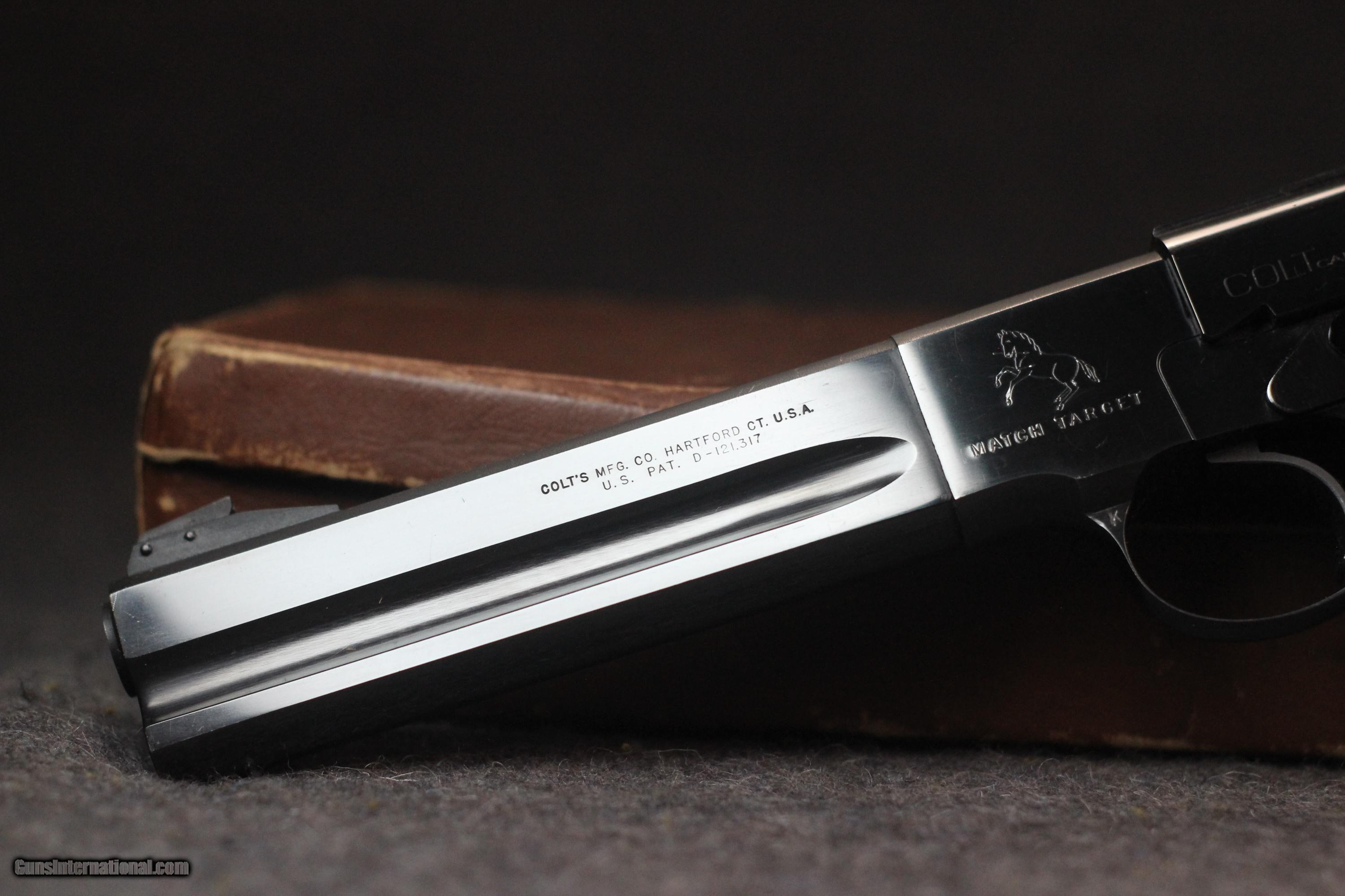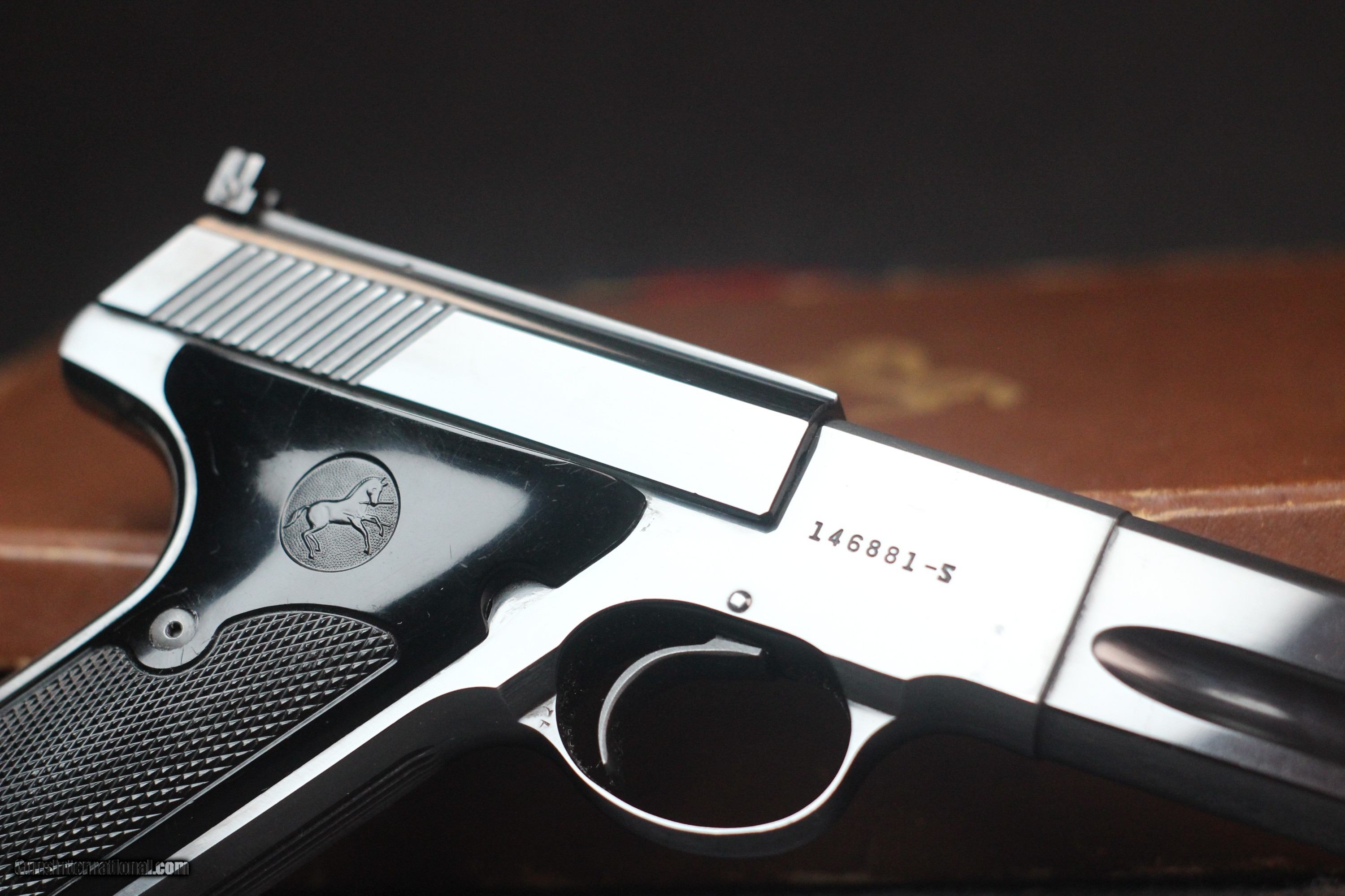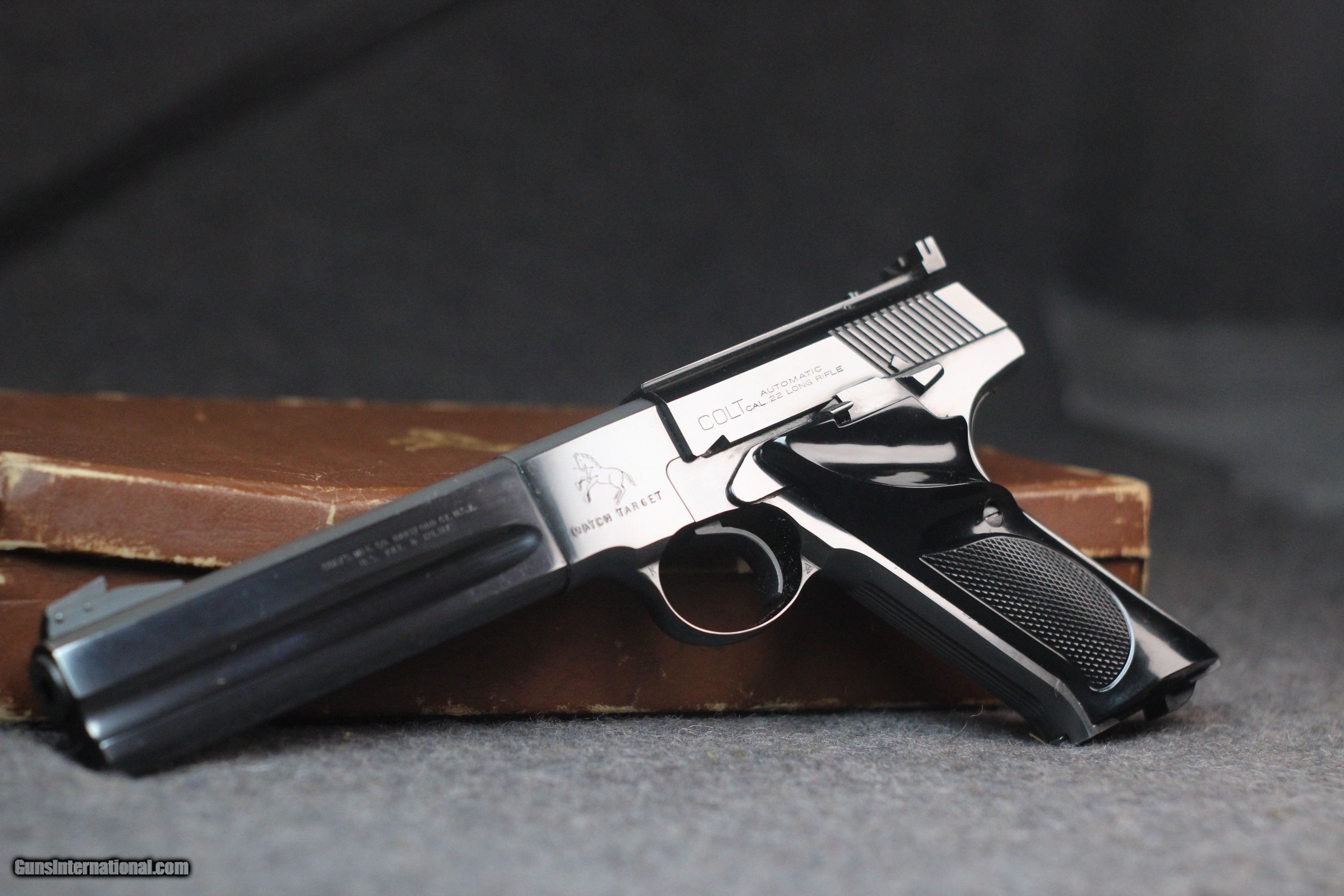 Description: 6in heavy barrel 3rd Series Circa 1958 Black grips 99% factory blue Excellent bore Adjustable sights In factory Colt box Collector quality Test fired only +$50 shipping SOLD Handgun Caliber: .22 Long Rifle |