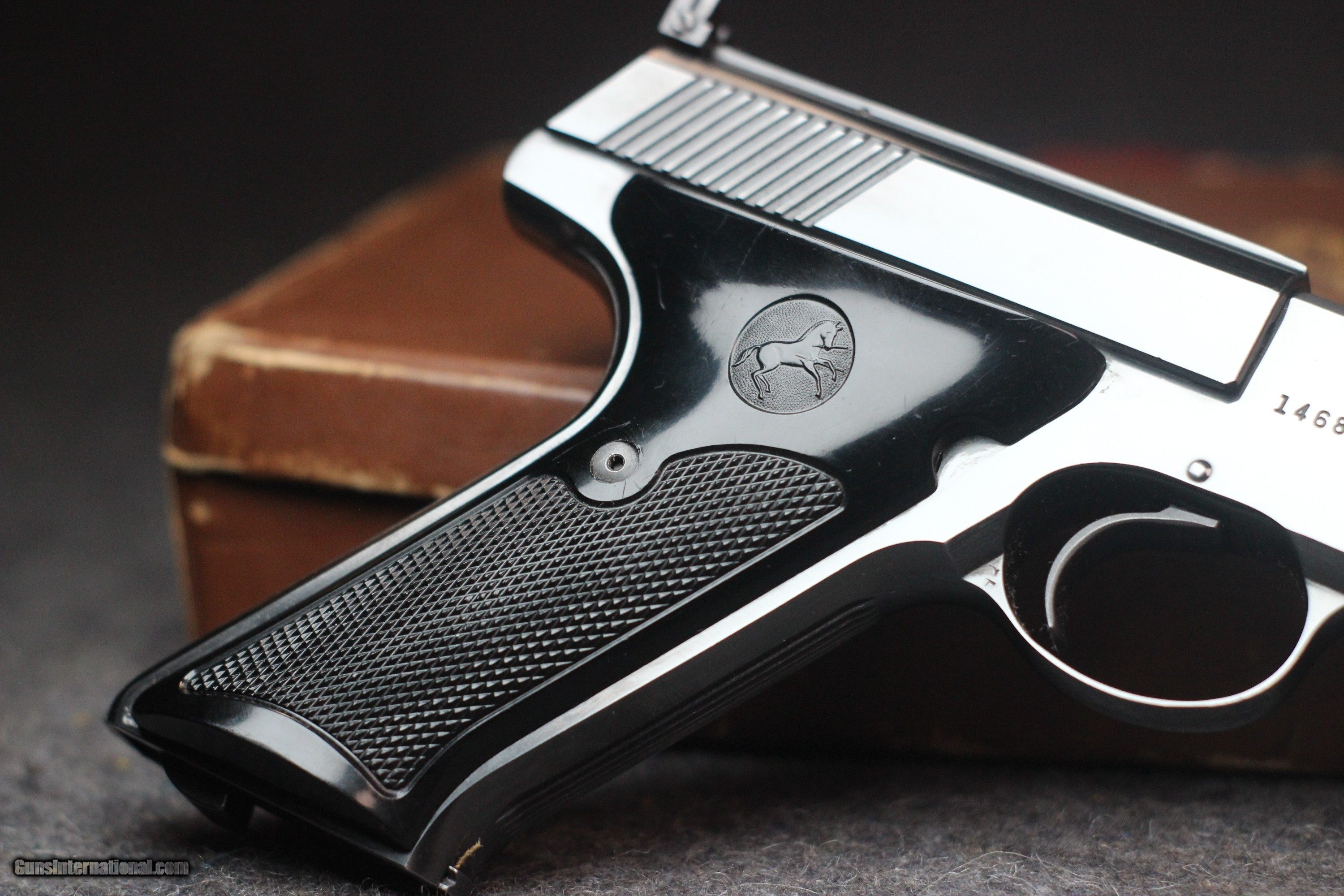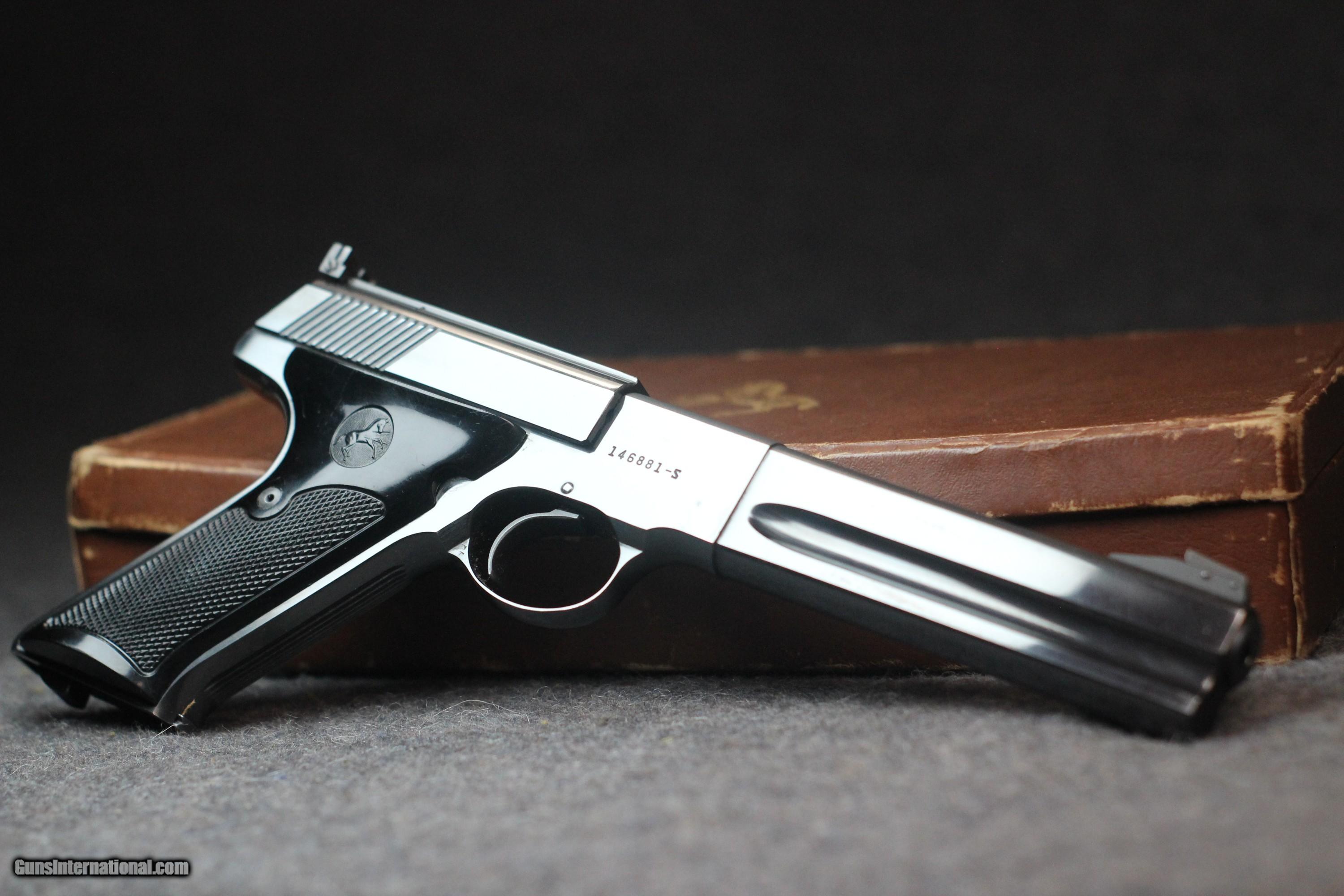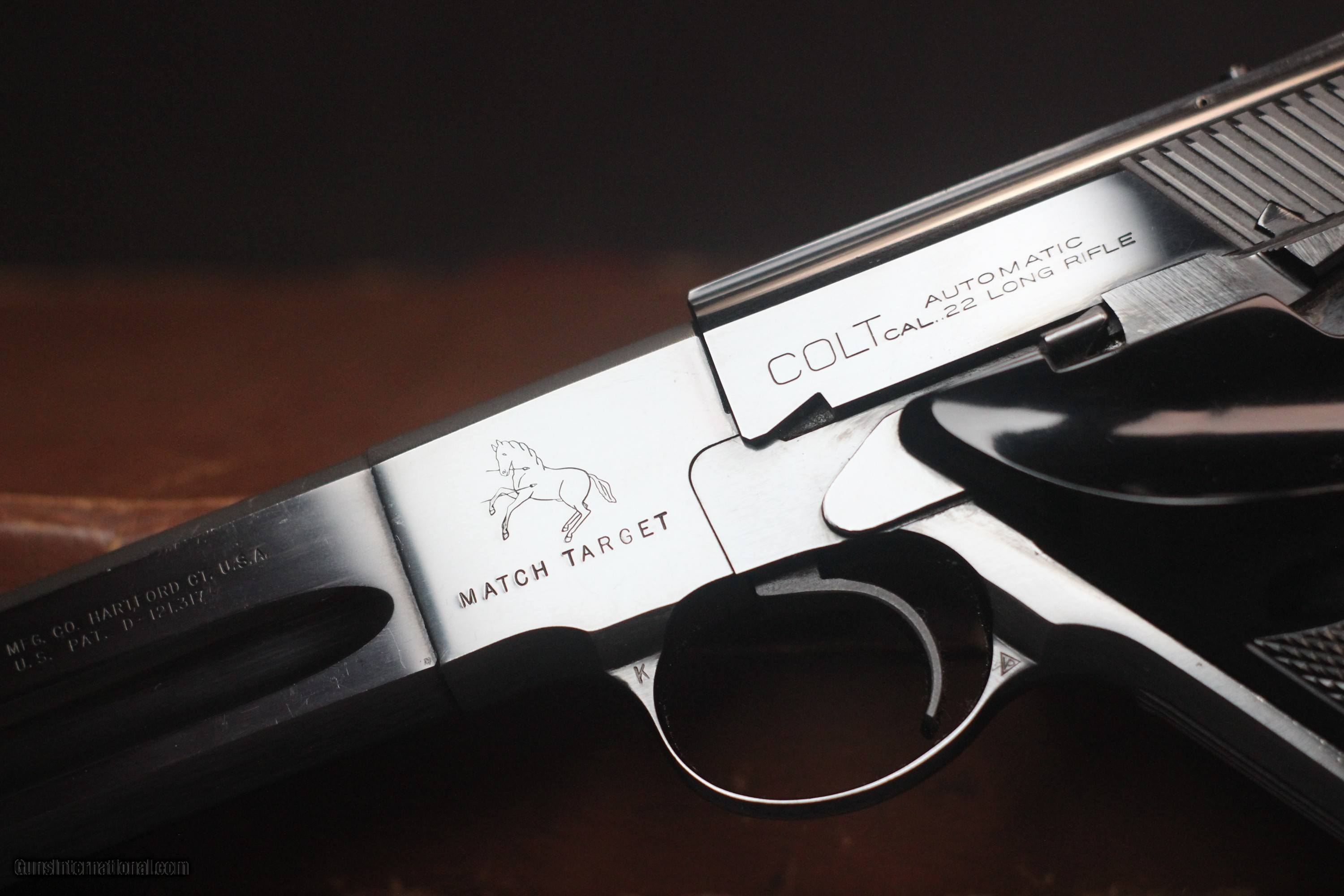 Description: 6in heavy barrel 3rd Series Circa 1958 Black grips 99% factory blue Excellent bore Adjustable sights In factory Colt box Collector quality Test fired only +$50 shipping SOLD Handgun Caliber: .22 Long Rifle |
