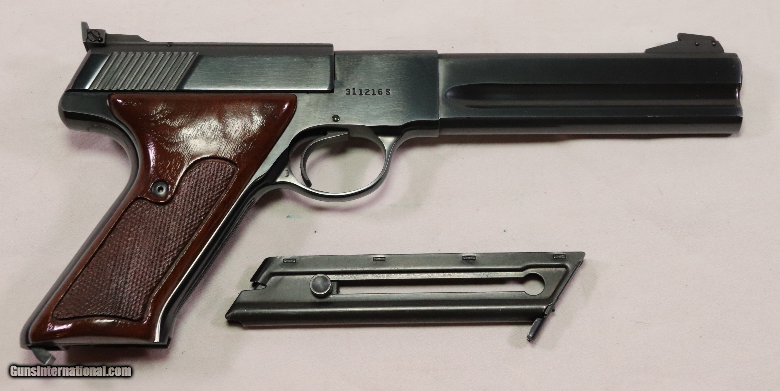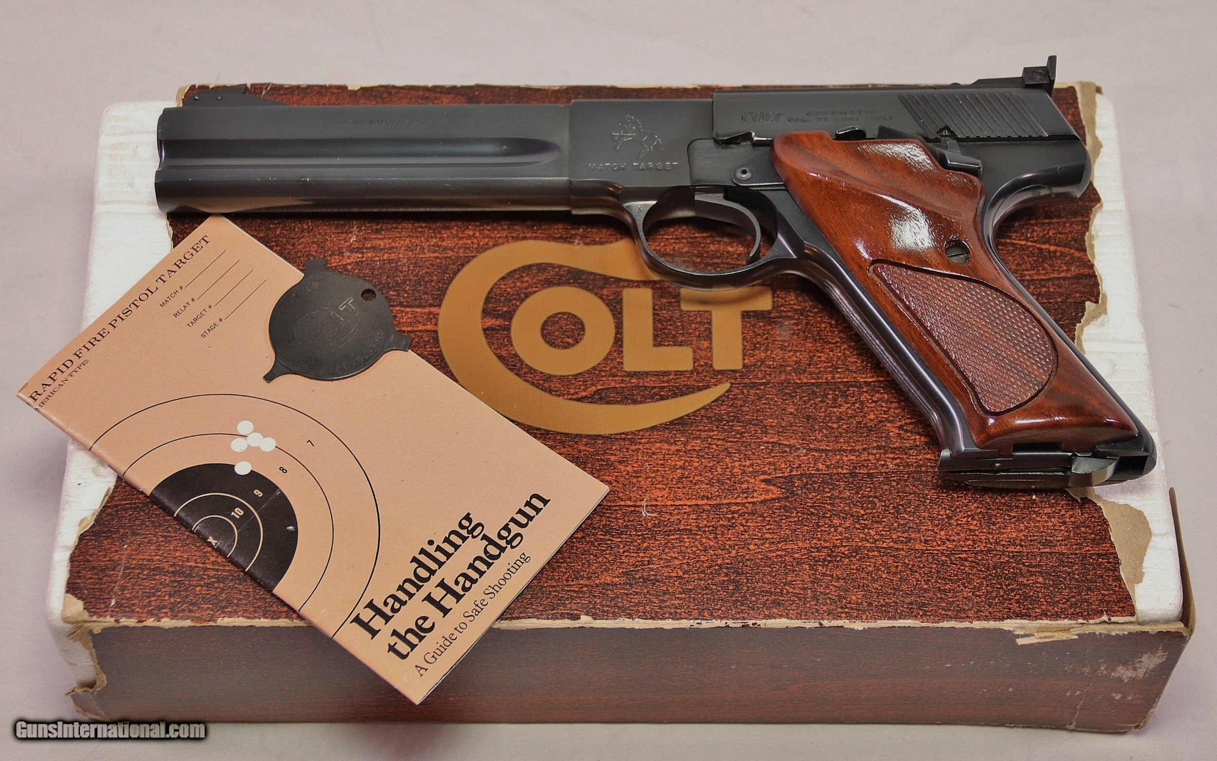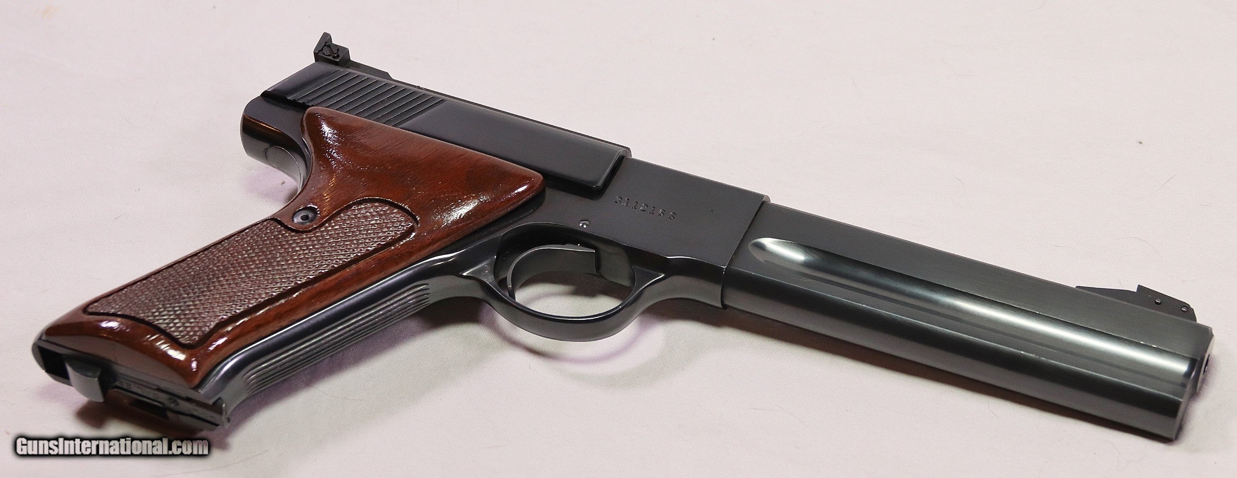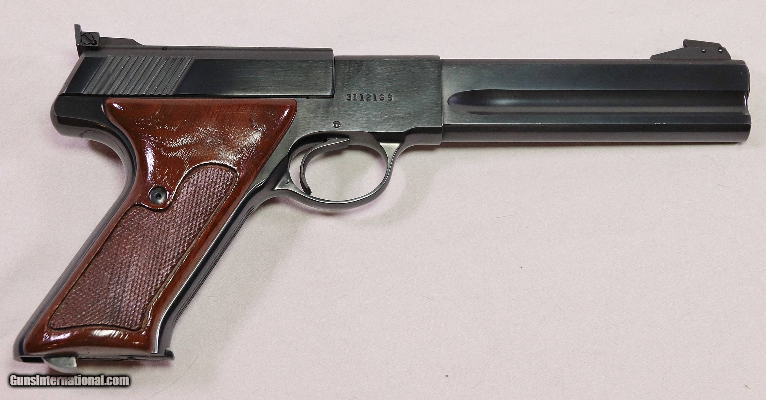 Description: This Colt Woodsman Match Target was among the last made in 1977. It has been well cared for, and after 43 years it remains in Excellent condition. It has a few very light scuff marks that would otherwise present a perfect finish. The marks can be seen in the photos, nothing is hidden. The Bore is perfect, the action smooth and fully functional. Some evidence of light use can be seen on the bolt face and chamber area. It will be shipped with the original box that is missing both end flaps. The Colt screw driver is included as is a Colt “Handling the Handgun” booklet. Colt stopped production of the Woodsman in April, 1977. This pistol was made only 3 months before, and represents a nice representation of the end of the Woodsman. A nice addition to a Woodsman collection. Cal .22 LR with a 6in barrel. Serial Number: 311216S. FFL Required. Beaver Creek Arms TERMS & CONDITIONS Objective: As a collector of 35 years and Licensed Firearms Dealer since 1989 I have a clear definition of a satisfactory transaction. I will be paid as we agreed to, and you will be satisfied with your purchase. My goal is to establish a client list of satisfied repeat customers who will recommend me to other collectors. It’s just that simple. Exiled Saudi princes with secret funds needing change from an over paid purchase need not apply. Notice: ALL Federal, State, & Local firearms laws will be followed. I will take NO shortcuts in the process of a legal sale or transfer, so please don’t ask. SHIPPING: Normally shipments are made via U.S.P.S. Priority Mail, Insured, with Signature required. Typical Packing, Shipping and Insurance cost for a handgun is $30.00, and for a Long Gun is $45.00. Checks to be made out to: Steve Clark Mailed to: 380 Beaver Creek Rd. Dillsburg PA 17019 FIREARMS: Modern firearms, post 1898, can only be shipped to a Type 01 Federal Firearms License address. Curio-Relic firearms, as defined by the BATF list, can usually be shipped to a Type 03 Collectors License address. Some states have additional restrictions such as CA, CT, DC, IL, NJ and NY. A signed valid FFL license copy either mailed or emailed will be required for shipment to only the license address. Antique firearms, pre 1898 do not require a Federal License. For purchase, a copy of a Government Issued Identification (Drivers License, Etc), showing date of birth and current address will be required. GUARANTEE: Your complete satisfaction is assured, see objective above. If you are not satisfied, please contact me within 3 days of receipt. Please don’t fire the weapon, safety, function and accuracy are NOT Guaranteed. Any weapon offered by Beaver Creek Arms is never test fired nor is there any representation the gun is functional and safe to fire. These guns are sold for collectors and only represented as used firearms that must be checked by a competent person, observe all the necessary safety precautions prior to attempting to load and fire one of these weapons RETURNS: Returns must be made within 3 days of receipt. They must be received in exactly the same condition with no parts exchanged. If it has been altered, damaged, or fired, a refund will not be made. Packing, shipping and insurance cost will not be refunded. All layaway purchases are returnable for merchandise credit only. PAYMENT: Bank check, Personal check, and Money Orders are preferred. Visa and MasterCard are accepted with a 3% processing fee. For Visa and MasterCard orders please provide the account number, code number, expiration date, name on card, phone number and card billing address. This information can be phoned in, or E-Mailed. All orders must be paid in advance, C.O.D. orders are not accepted. Checks, both Bank and Personal must clear before the order will be shipped, usually a 2 week delay. LAYAWAYS: A 20% deposit is required. Balance is due in 60 days. Deposits are non-refundable and are forfeited after 60 days. Layaway sales are returnable for merchandise credit only. SALES TAX: Pennsylvania state sales tax is 6% for in state purchases. The payment of other states sales tax, if applicable, for shipped items is the buyers responsibility. DISCREET: Client information will remain Confidential. Your privacy is protected. SOLD |