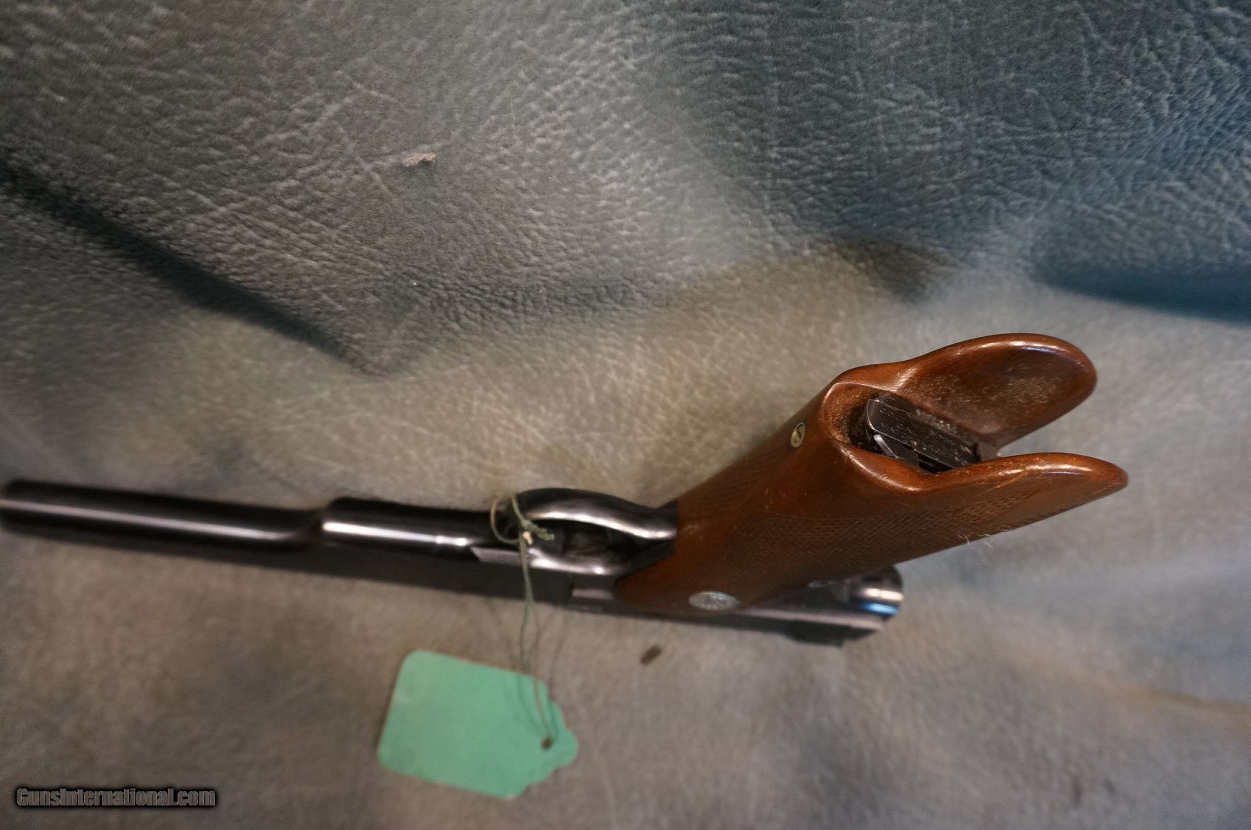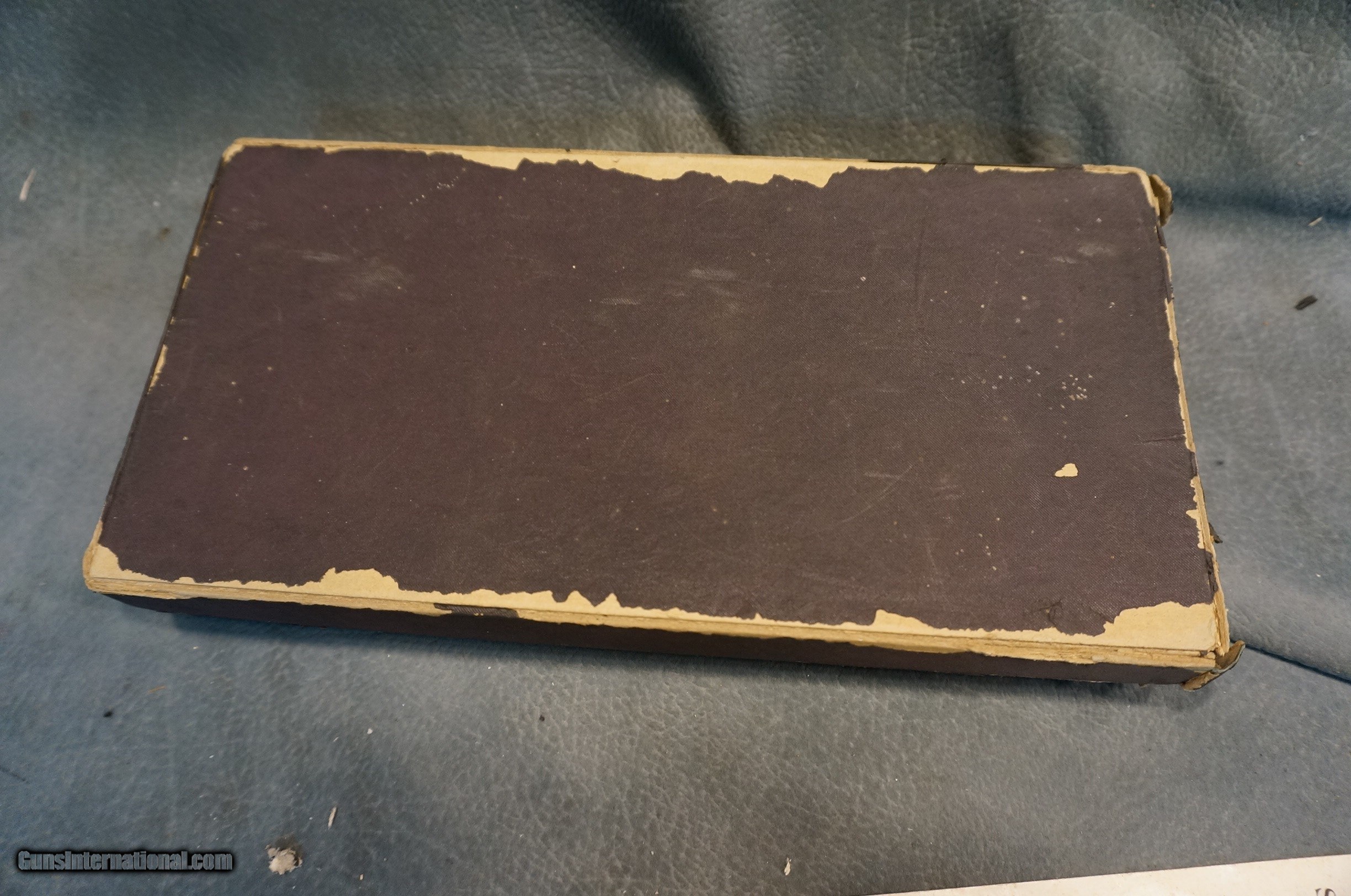 Description: Colt Woodsman Match Target Bullseye 1st Model 22LR 6 5/8" barrel,elephant ear grips,serial #MT1364,very fine condition with the original box and papers,hang tag and test target. GUN COLLECTIONS WANTED FOR CASH! We buy, sell, consign and trade new and used firearms. This is our 44th year in business. We offer 90 day layaways with 20% down. No return on layaways. Firearms will need to be transferred through a FFL dealer. Prices reflect a cash discount. There will be 3% added to credit card sales. We trade for gold and silver. THANK YOU! SOLD |
