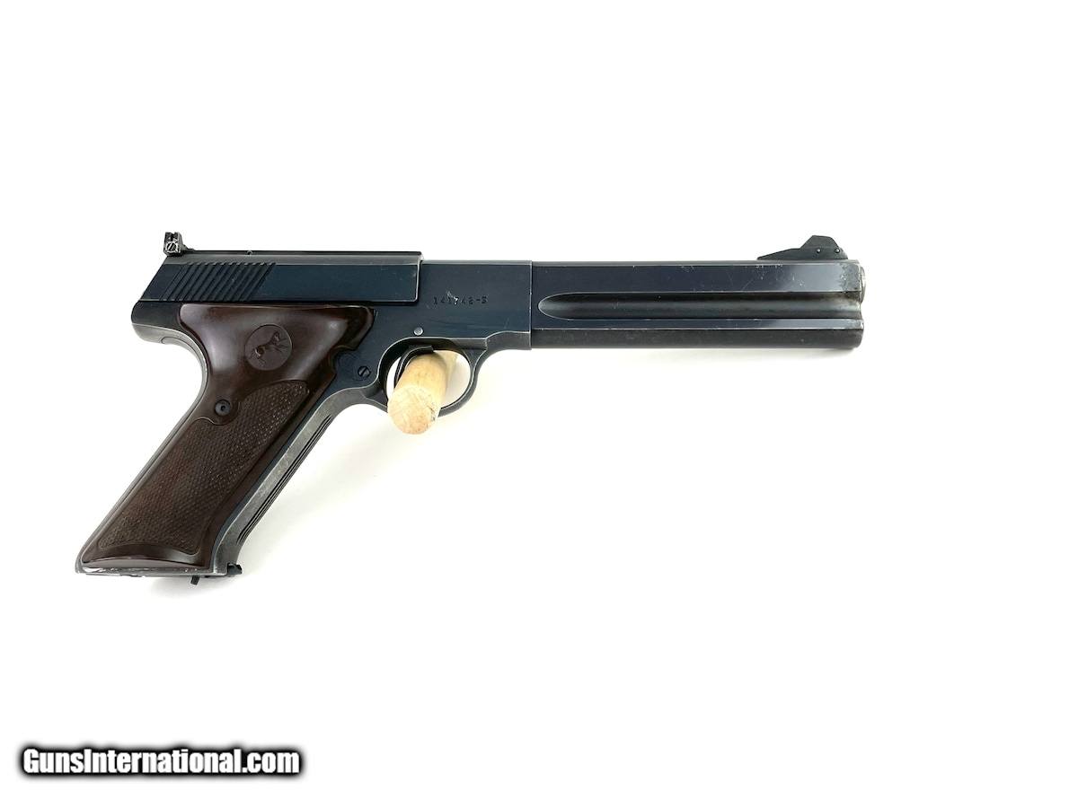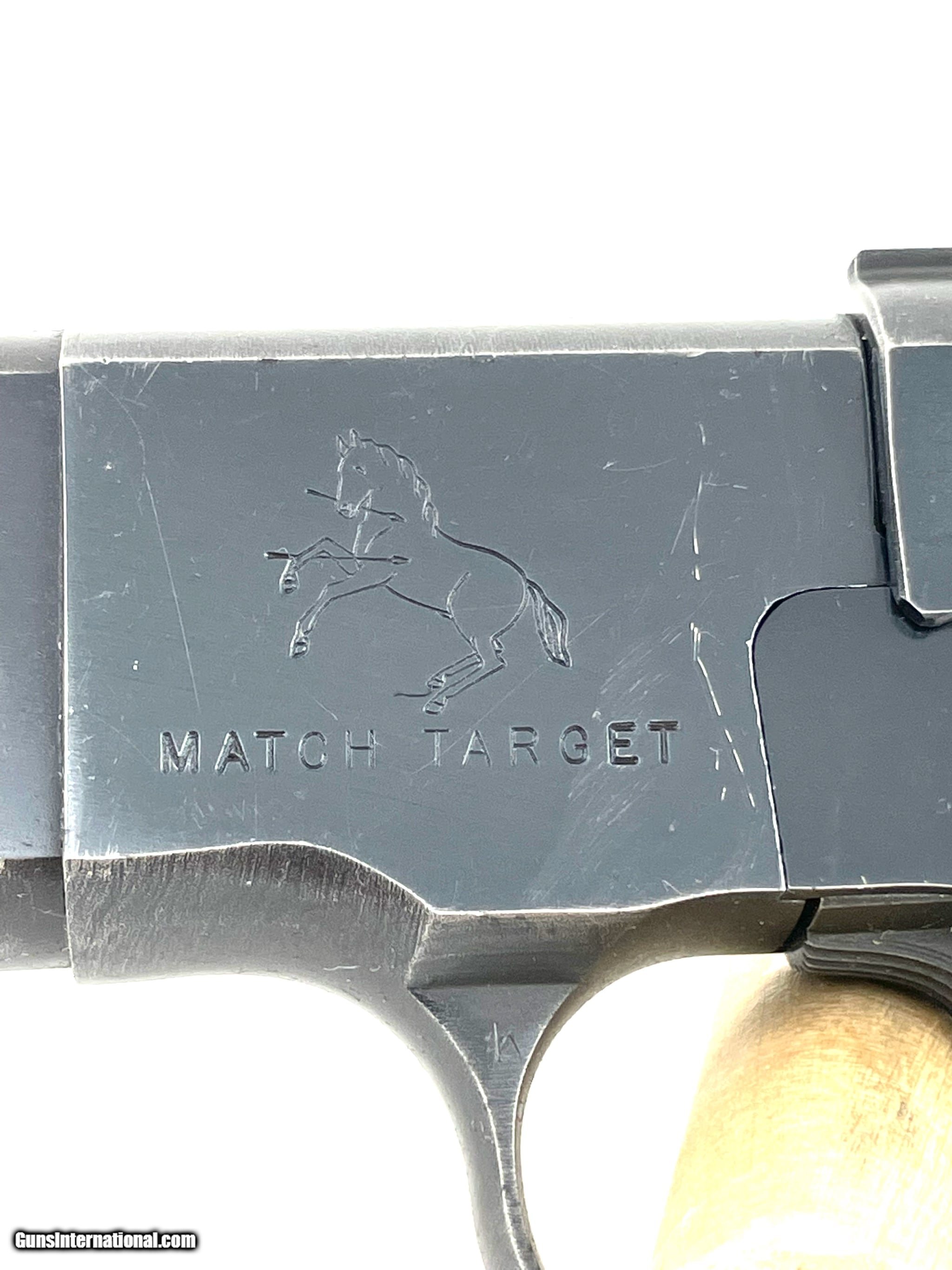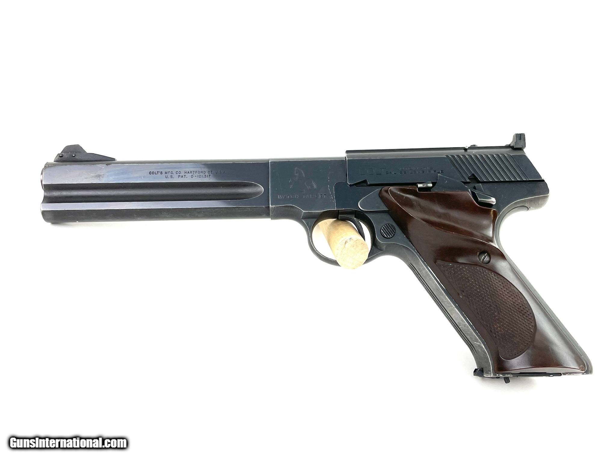 Description: Guns Listing ID: 519746 Well used 1954 built Colt Woodsman 2nd Series Match Target Model. Shows wear from use but was well cared for. NEW production (GPC) magazine. Not an original Colt magazine. \"Match Target\" logo is visible on the side of the frame. Original/period correct Coltwood(?) grips. SOLD Manufacturer: COLT Model: WOODSMAN MATCH TARGET Caliber Info: .22 LR Condition: Used - Non-Certified Barrels: 6 BARREL Finish: BLUED |
