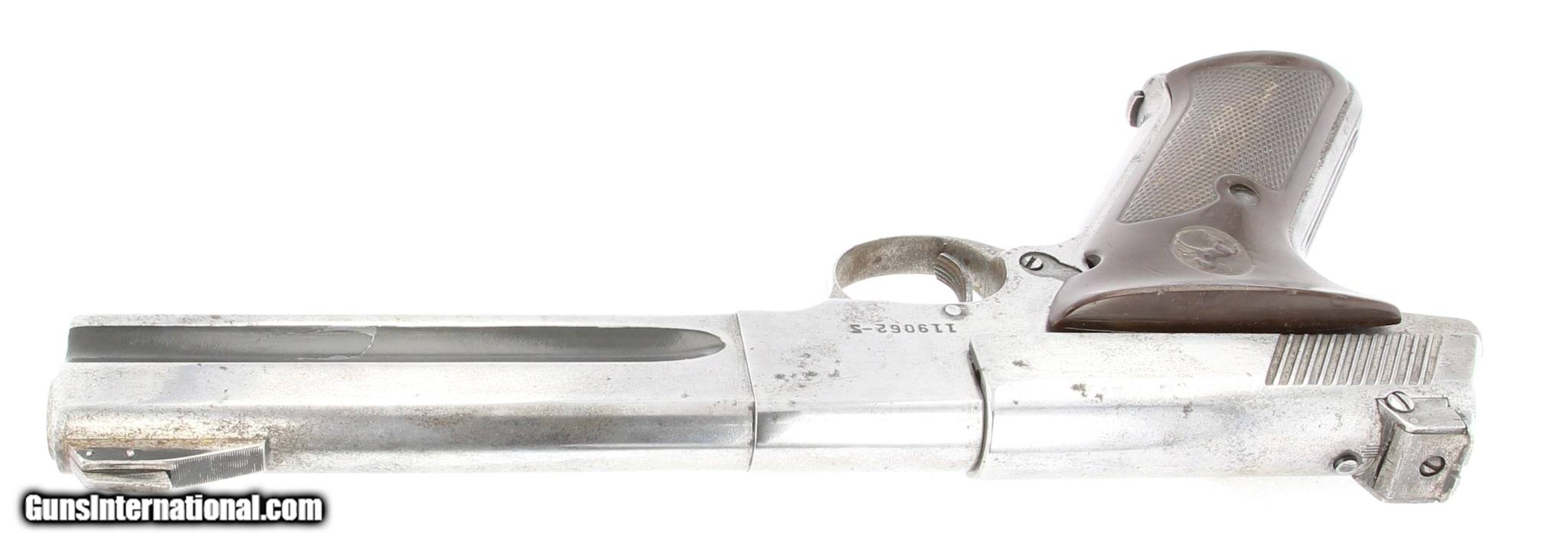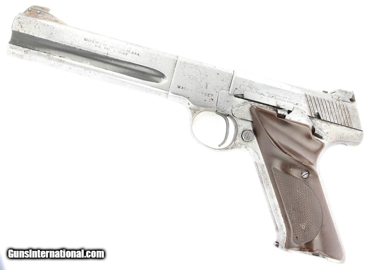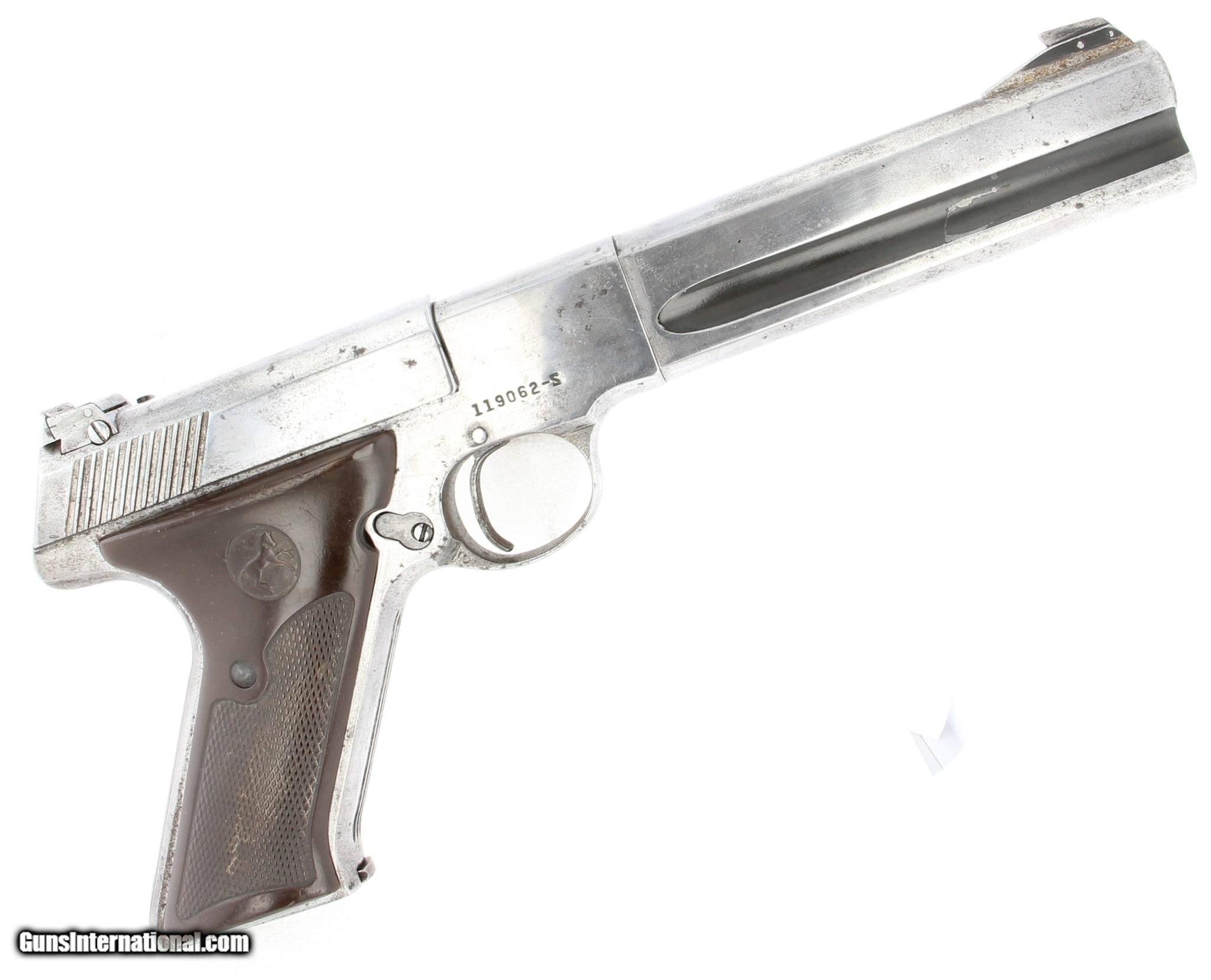 Description: Guns Listing ID: 663424 up for sale is a vintage Match Target Wooodsman MK2 from colt. Manufactured in 1947-1955. The two line address/patent marking is marked on the left side of the barrel, standard frame and slide markings with the serial number on right side of the frame. Ramped blade front and adjustable rear target sights, serrated trigger and grip straps, blue Colt marked magazine and fitted with checkered plastic grips with right hand thumb rest and the Rampant Colt molded at the top of the right panel SOLD Manufacturer: COLT Model: WOODSMAN MATCH TARGET Caliber Info: 22 LR Condition: Used - Non-Certified Barrels: 6 BARREL Finish: STEEL |