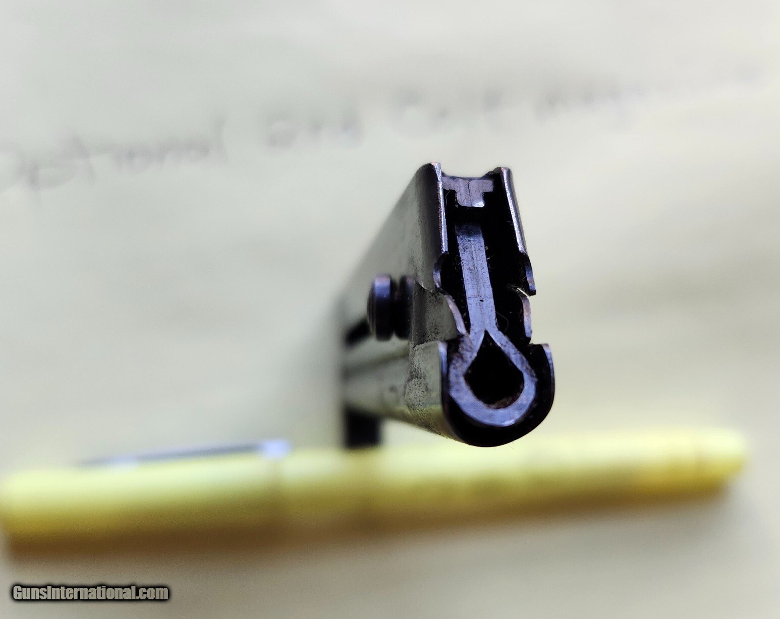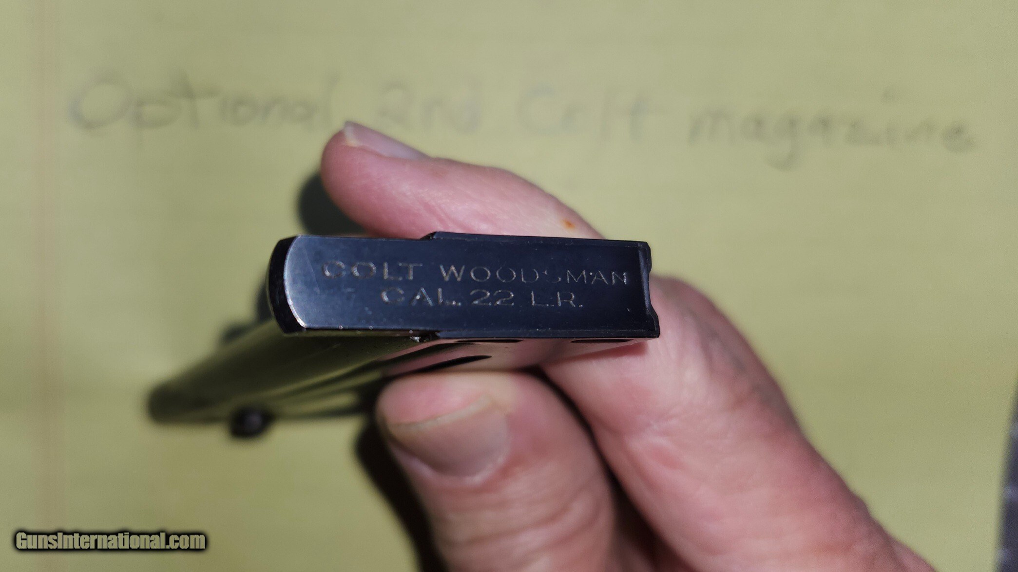 Description: No Sales Tax collected. $800 shipped with one Colt magazine $900 shipped with two Colt magazines (see photos 12 & 13. This old timer would make a nice shooter. These were made 1933-1947. Remarks: * It shows minor loss of finish on high points, edges and at the muzzle.. * The right grip panel has a few flattened checkers as depicted in photo 7, * There is some freckling (bluing flaked off leaving bright metal), particularly under the right grip panel. * The magazine is two-tone and marked "Colt Woodsman CAL .22 L.R." There is some oxidation on the magazine floorplate. * There is no damage to the breech face from dry firing and the bore is bright. * There is a speckeling of dark pitting (?) on the right side of the slide and adjacent frame (also photo #7). * There are some small bright scratches. * There is a significant scrape on the front grip strap (see photo 11). * The mainspring housing (that also serves as part of the rear grip strap) has a rectangular area that consists of a number of horizontal grooves (not checkering). My transfer agent does not ship directly to C&R Licensees. No sales to California. 3-day return privilege; retuns are subject to a $100 handling fee. Payment must be received within 10 calendar days. Handgun Caliber: .22 Long Rifle Barrels: 4.5 Price: $800.00 Buy Now Contact Seller |