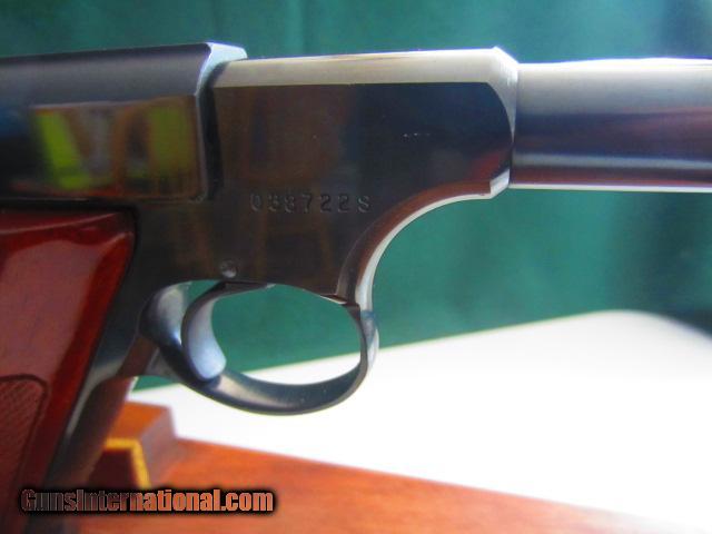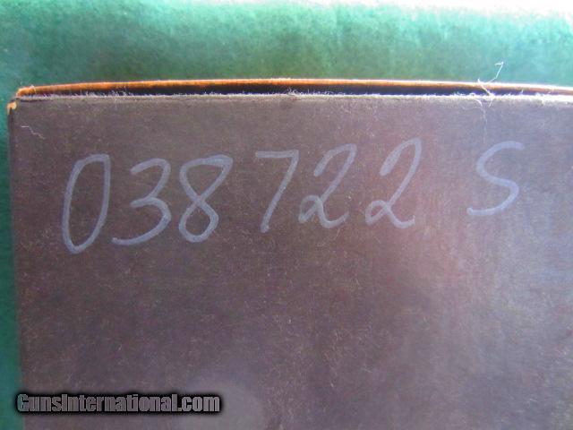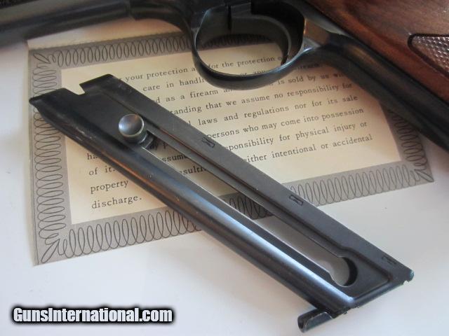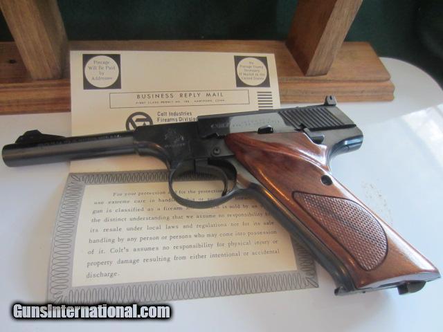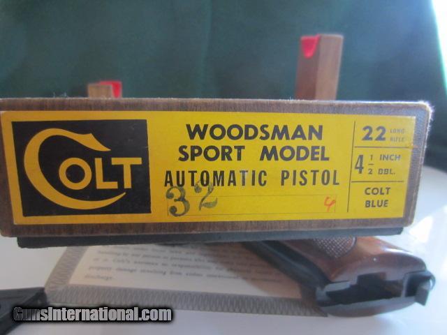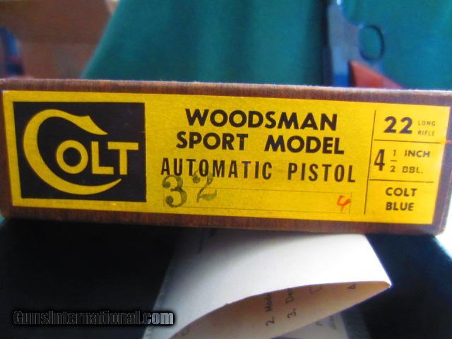 Description: COLT WOODSMAN SPORT MODEL 4 1/2" BARREL, THIRD MODEL SERIAL NUMBER 038722 S WITH ORIGINAL FACTORY BOX AND WARRANTY CARD. OVERALL CONDITION MINT SHOWS NO USE. FACTORY ORIGINAL BOX NEW CONDITION. NEED MORE INFORMATION ALWAYS BEST TO CALL OUR OFFICE 716-941-3946 SOLD |