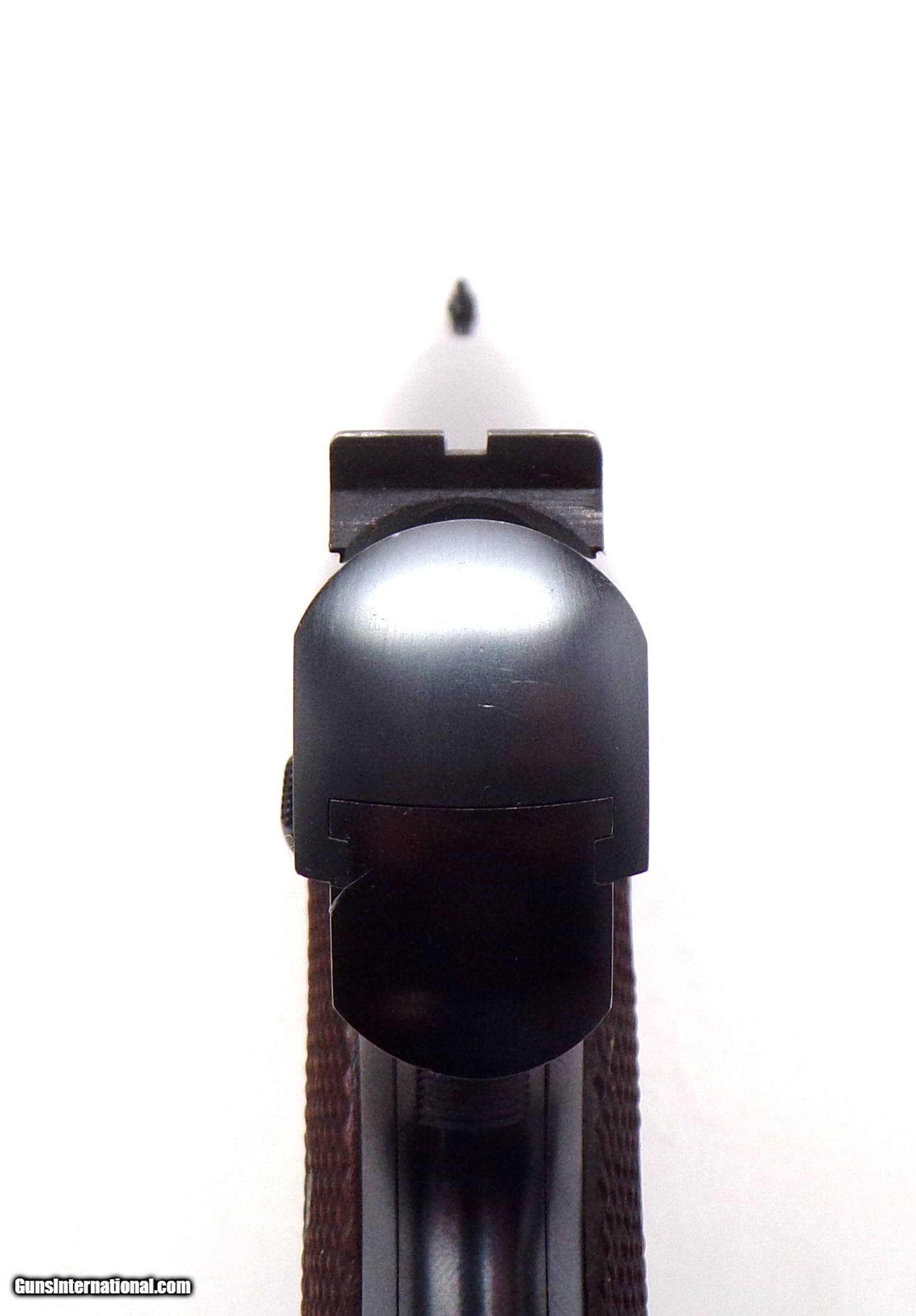 Description: SOLD You will like this Woodsman Sport. The original blue finish will rate 99%. Markings are clear and original. Action works perfectly. Grips are excellent and the fit is perfect. No cracks or chips. It comes with the correct magazine. Bore is excellent with bright and shiny lands and grooves. One nice feature of this Woodsman is the adjustable sights front and rear. These are more sought after than the fixed sights. You will also receive a correct Woodsman box which is in very nice condition. The number on the box does not match, but the label is correct for the gun. This Colt Woodsman Sport is nice enough to fill a spot in any collection. I have more pictures available. Let me know if you would like a link. American Arms & Antiques item #2785 SOLD Curio/Relic: Yes |