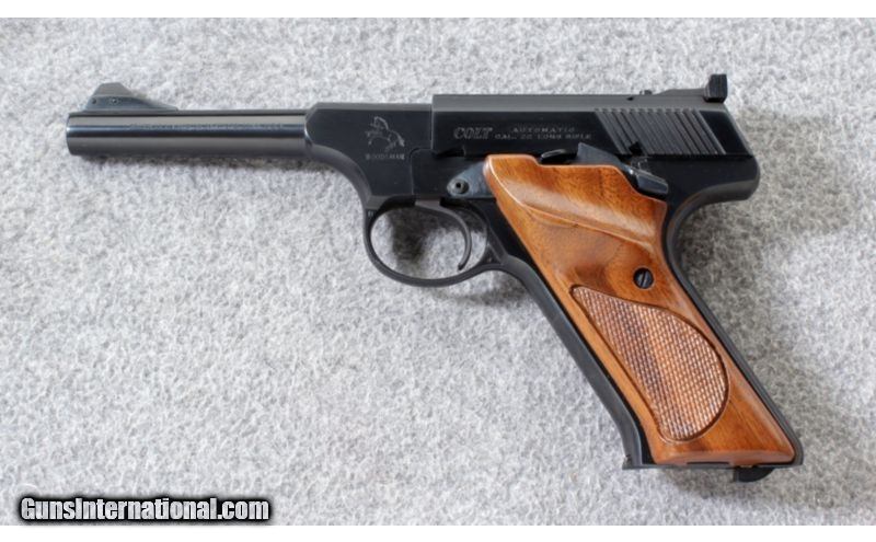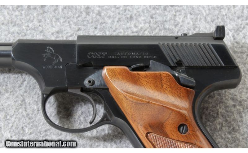 Description: This Colt Woodsman would be a great addition to any collection SOLD Manufacturer: 1977 Caliber Info: .22 LR Metal Condition: Excellent with a few marks on the finish Wood Condition: Excellent with a few light handling marks Bore Condition: Excellent Barrels: 4 1/2 inch barrel Stock: Checkered wood grips with right hand thumb rest Weight: 31 oz. Sights: Adjustable rear sight with blade front Extras: Box Item Location: Lehi, UT |