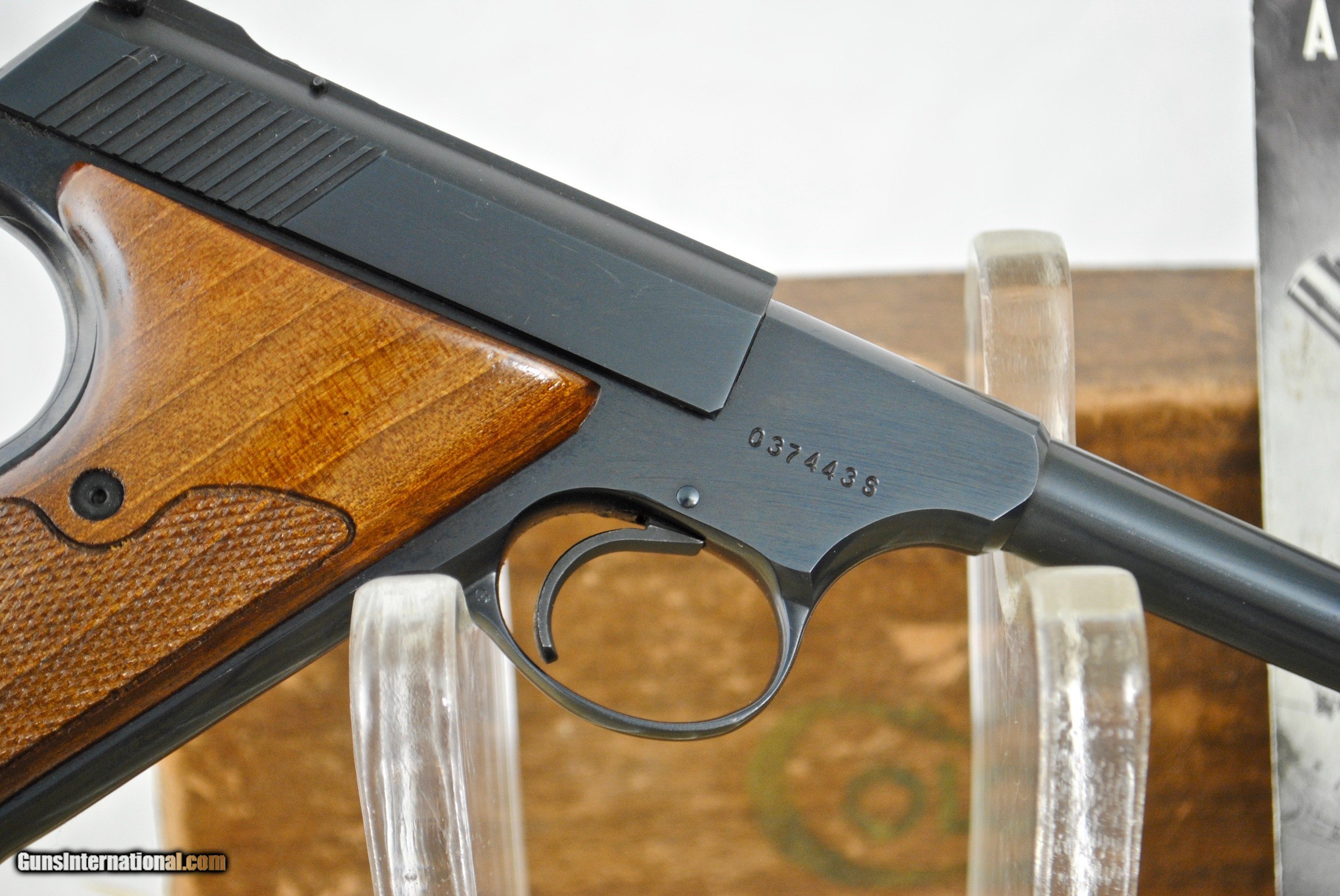 Description: Here is a mint condition Colt Woodsman Third Series with box and paperwork as shown. Perfect bore. Barrel is 4 1/2". Really a nice piece. Box is tatered and has serial number of gun. Wood grips show no wear. Shipping is $50. For inquiries please call Guy - 407-721-3748 SOLD |