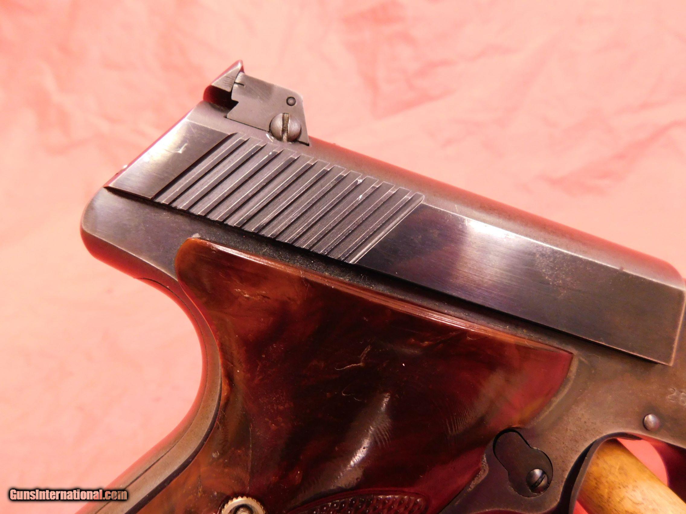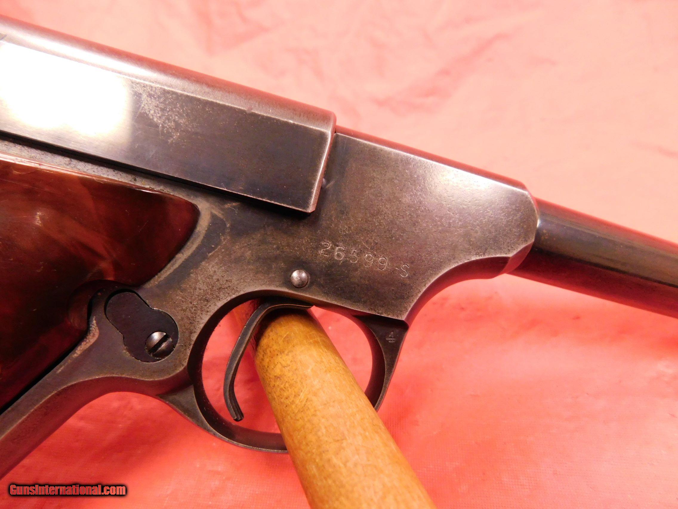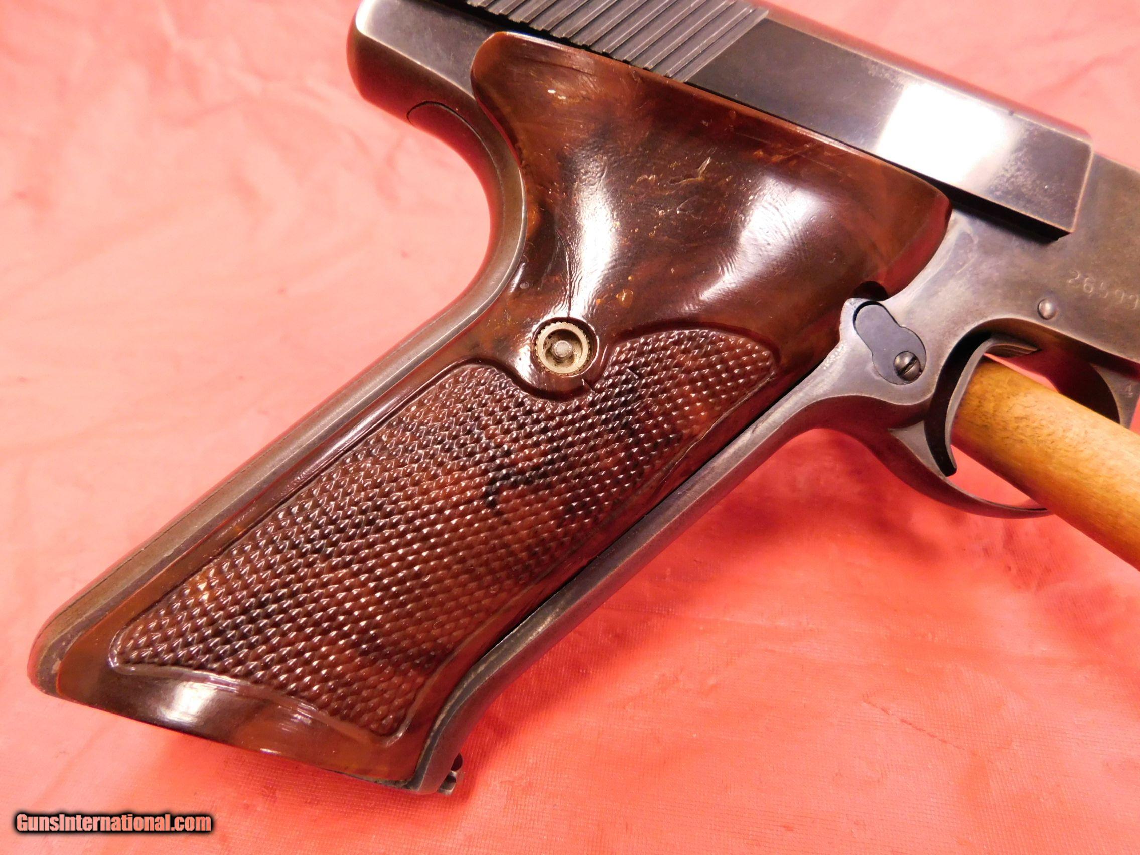 Description: Colt Woodsman 22lr 4 1/2" bbl, overall great condition, finish is showing some wear, grips in good shape, some handling marks, no evidence of being dry fired, made between 50-55, nice shiny bore serial #26599-S. Only $550 $25 shipping and NO cc fees. Please ask for Steve 716-833-2581 or 716-835-1546. SOLD Manufacturer: Colt Model: Woodsman Serial Number: 26599-S Caliber Info: 22lr Condition: used Barrels: 4 1/2 |