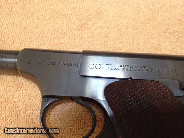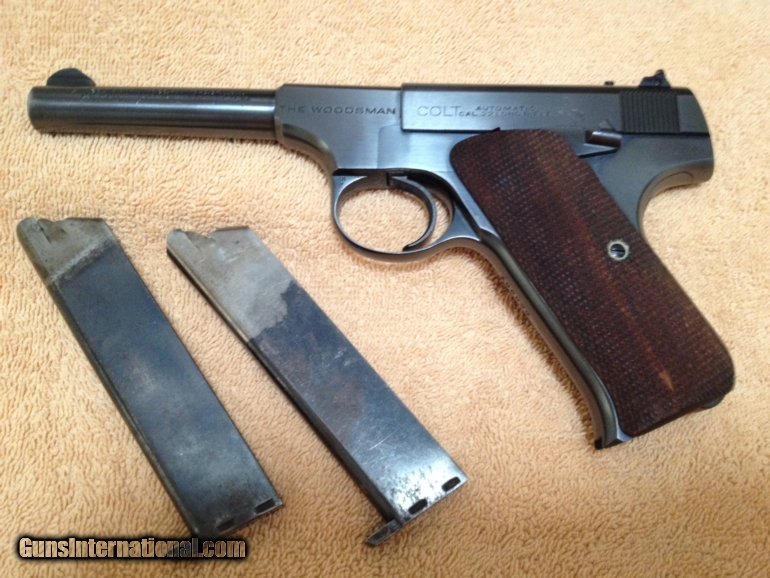 Description: THIS IS A100% ORIGINAL COLT WOODSMAN "SPORT MODEL" WITH 4.5 INCH BARREL. IT IS FIRST SERIES, SERIAL NUMBERED 105024 PRODUCED IN 1936. IT HAS TWO ORIGINAL EQUIPMENT ACID DIPPED STEEL MAGAZINES! SIH TO YOUR FFL INCLUDED IN PRICE. SOLD |