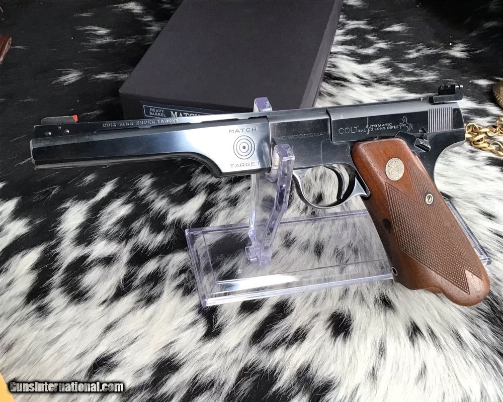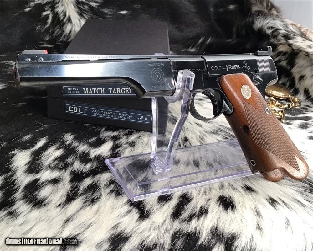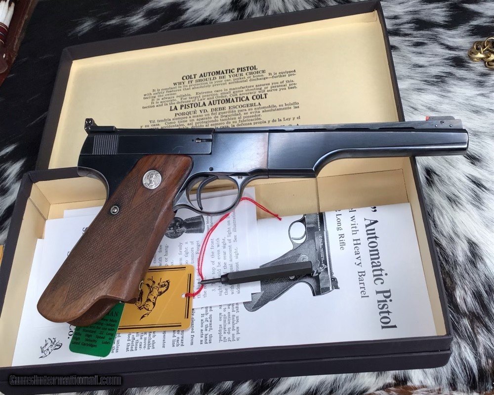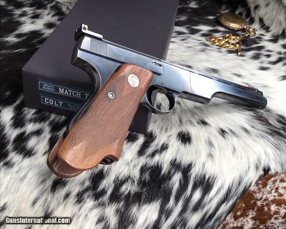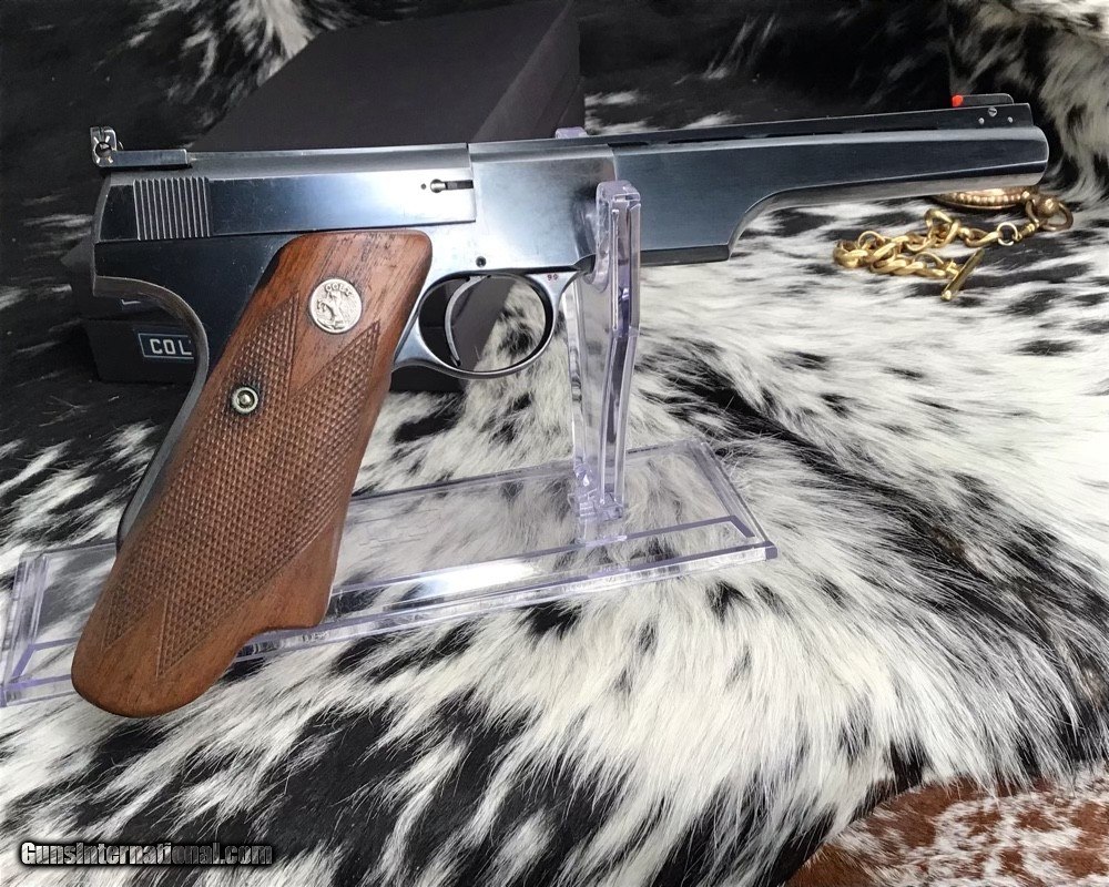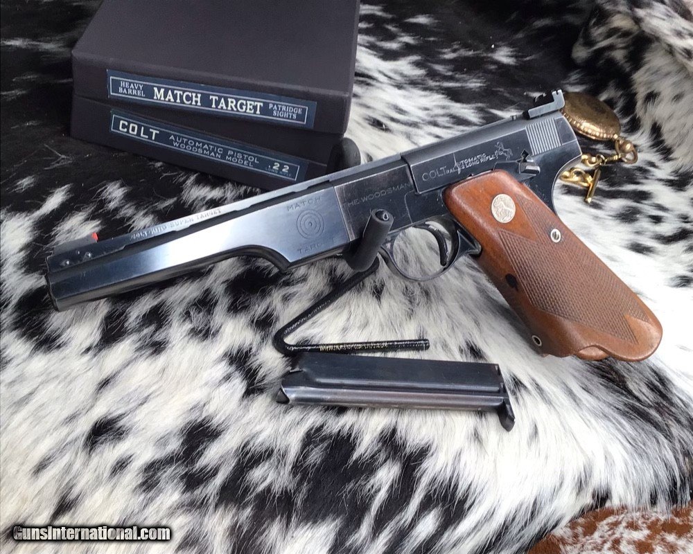 Description: The Woodsman Match Target (Bulls Eye) 1st Series – 22 Long Rifle Cal. Semi-Auto Pistol – w/6.63” Barrel w/Rare Colt King Super Target Vent-Rib w/Target Front & Adj. Target Rear Sights – Blued Finish – w/Factory Checkered Silver Colt Medallion “Elephant Ear’ Target Grips – w/Factory Correct Colt Match Target Model Marked Magazine – Serial #MT7765 – Mfg. in 1940 , Comes in numbered to gun Colt box with owners papers, hang tags, sight adjustment tool, reproduction. 90 % condition Original blued finish. Very Rare factory Colt Kings Super Target Vent-Rib w/target Front and rear adjustable sights. Add 3% if paying with credit card. Free shipping for US Veterans and retired LEO. God Bless America from a proud American, and a Viet Nam Vet , thankful for our freedoms.. paid for by the Blood ,Sweat and Tears of our brave men and women in uniform. Ten Below Firearms is a Veteran owned and operated business. We specialize in out of production models of high quality firearms. We love to ship! We ship to all states where legal, just give us a call! Handguns normally ship for $35 and Long guns for $45 up to $75 for extra length long guns. That's 2-3 day USPS Priority shipping, Delivery conformation and with tracking number. Optional Postal insurance is additional $1.70 per $100 and highly recommended. We are OPEN BY APPOINTMENT ONLY FOR IN PERSON VISITS, We trade, sometimes. Layaway:If needed we offer a 60 day layaway program. Terms, 1/3 of purchase price down, 1/3 due in 30 days, and the final third to include card fees and shipping due at 60 days. Funds are non transferable and non refundable .Layaway is not available on negotiated prices. SOLD Curio/Relic: Yes Handgun Caliber: .22 Long Rifle Manufacturer: Colt Model: Woodsman Match Target Bullseye Serial Number: MT7765 Barrel Length: 6.63 inch Condition: Very good/ fine Metal Condition: Very good Wood Condition: Very good Bore Condition: Very good Barrel Type: Round Action: Semi auto Rib: Vented rib Finish: Blued Sights: Colt Kings Target adjustable Manufacture Date: 1940 Case: Box Item Location: Mn |