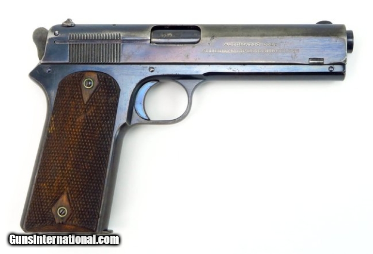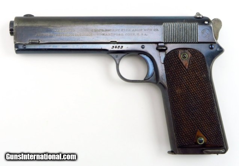 Description: Colt 1905 .45 Auto caliber pistol. Made in 1908. Very fine condition with 75% plus of the original finish. Grips are very good. Bore is very good. Action works perfectly. A very nice example! SOLD |