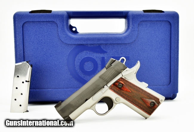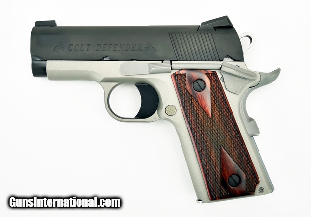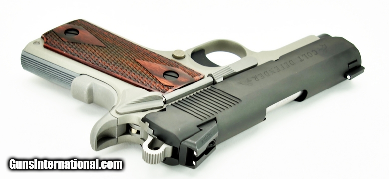 Description: Colt Defender Lightweight .45 ACP caliber pistol. 2 tone model with 3” barrel, box and extra magazine in excellent condition.