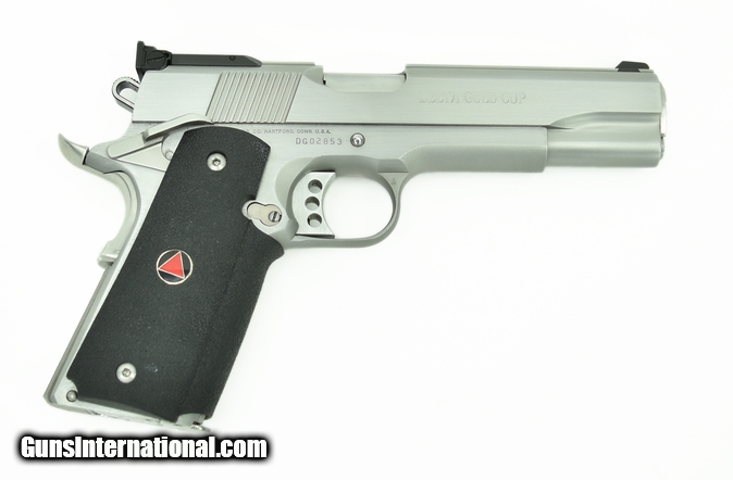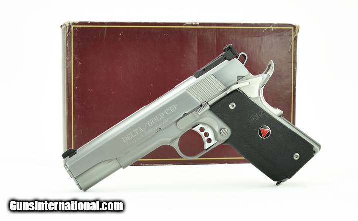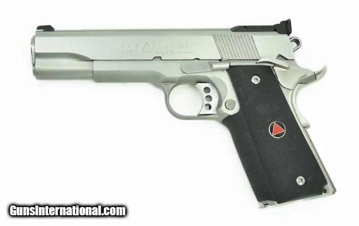 Colt Delta Gold Cup 10mm caliber pistol. Special edition stainless target model. Has some parts upgrades including Wilson Combat adjustable rear sight. Very good condition.