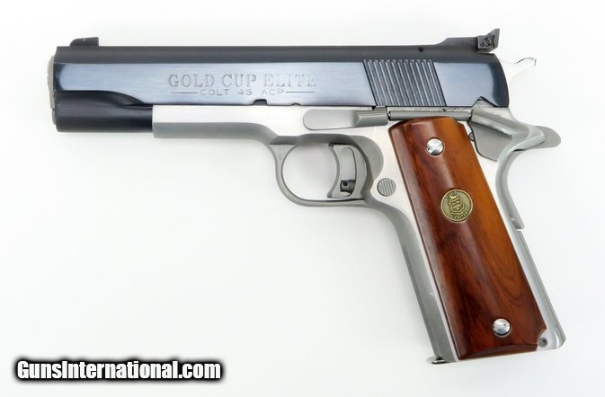 Description: Colt Gold Cup Elite .45 ACP caliber pistol. Rare Limited Edition model with 2-tone finish and special grips. Excellent condition.