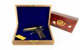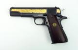 Colt Government .45 ACP caliber pistol. Sam Colt signature series special edition. Has gold decorations, made on a series 70. Excellent condition with box and wooden case.