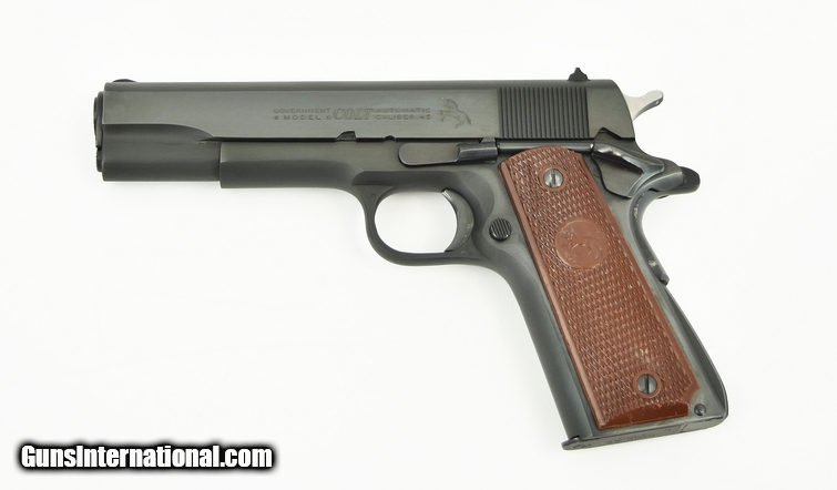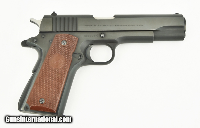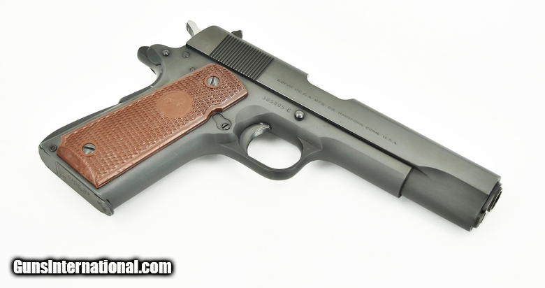 Colt Government .45 ACP caliber pistol. Pre-series 70 model made in 1966. Has a very faint blemish or rub mark near the muzzle, otherwise excellent condition.
