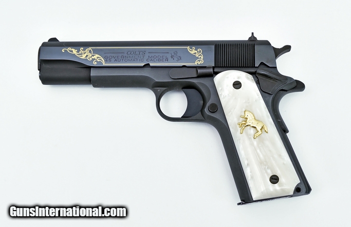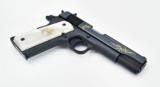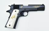 Colt Government .45 ACP caliber pistol. Special edition with gold decoration and fancy grips in excellent condition.