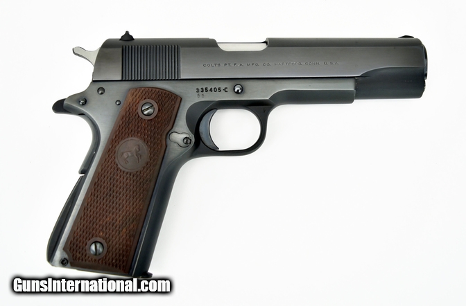 Description: Colt Government .45 ACP caliber pistol. Pre-series 70 “BB” prototype, made to test the Accurizer barrel bushing eventually used in the series 70 guns. Excellent condition with box.
