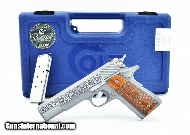 Description: Colt Government .45 ACP caliber pistol. One of 250 Ernst Government TALO edition with laser etched slide and carved grips. New