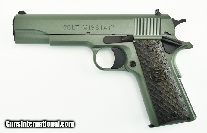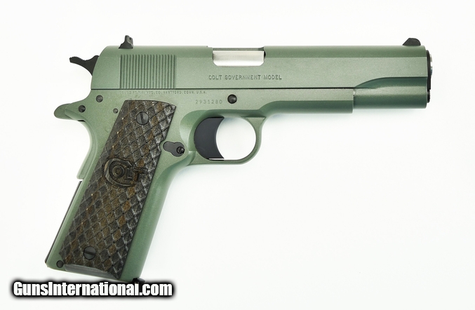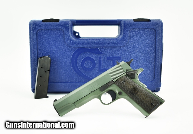 Description: Colt Government .45 ACP caliber pistol. Talo special edition with army green finish and G10 grips. New