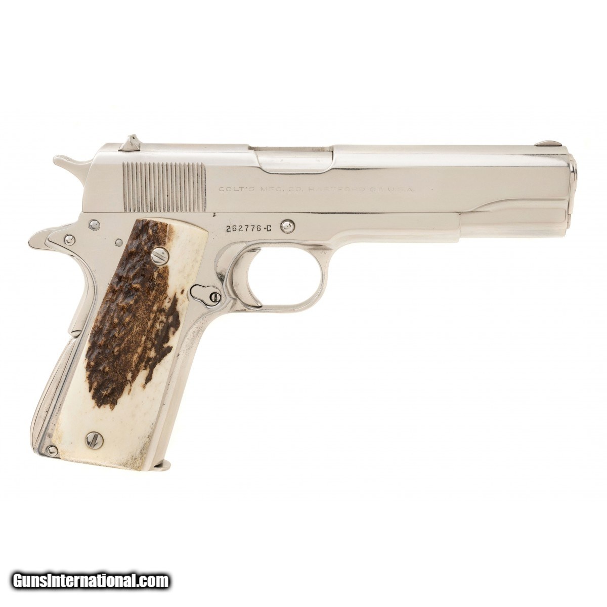 SN: 262776-C. Made in 1953, 45 ACP with a 5"" barrel. Bore and action are excellent. Has been chrome plated, looks great. Has stag grips. Overall excellent condition.