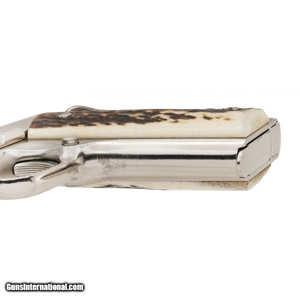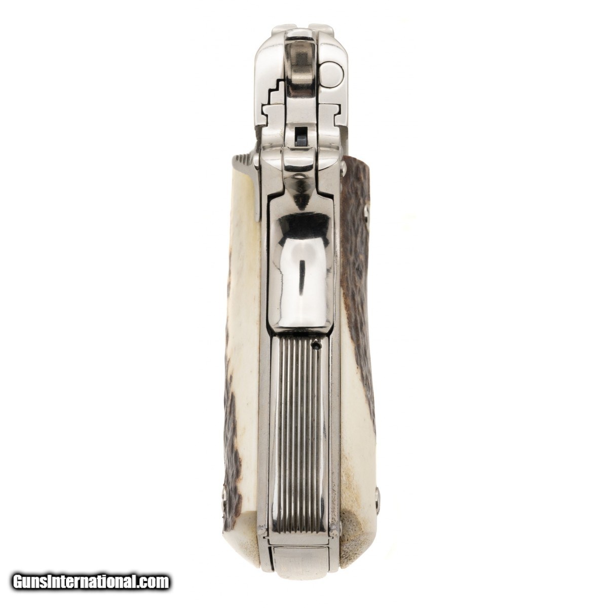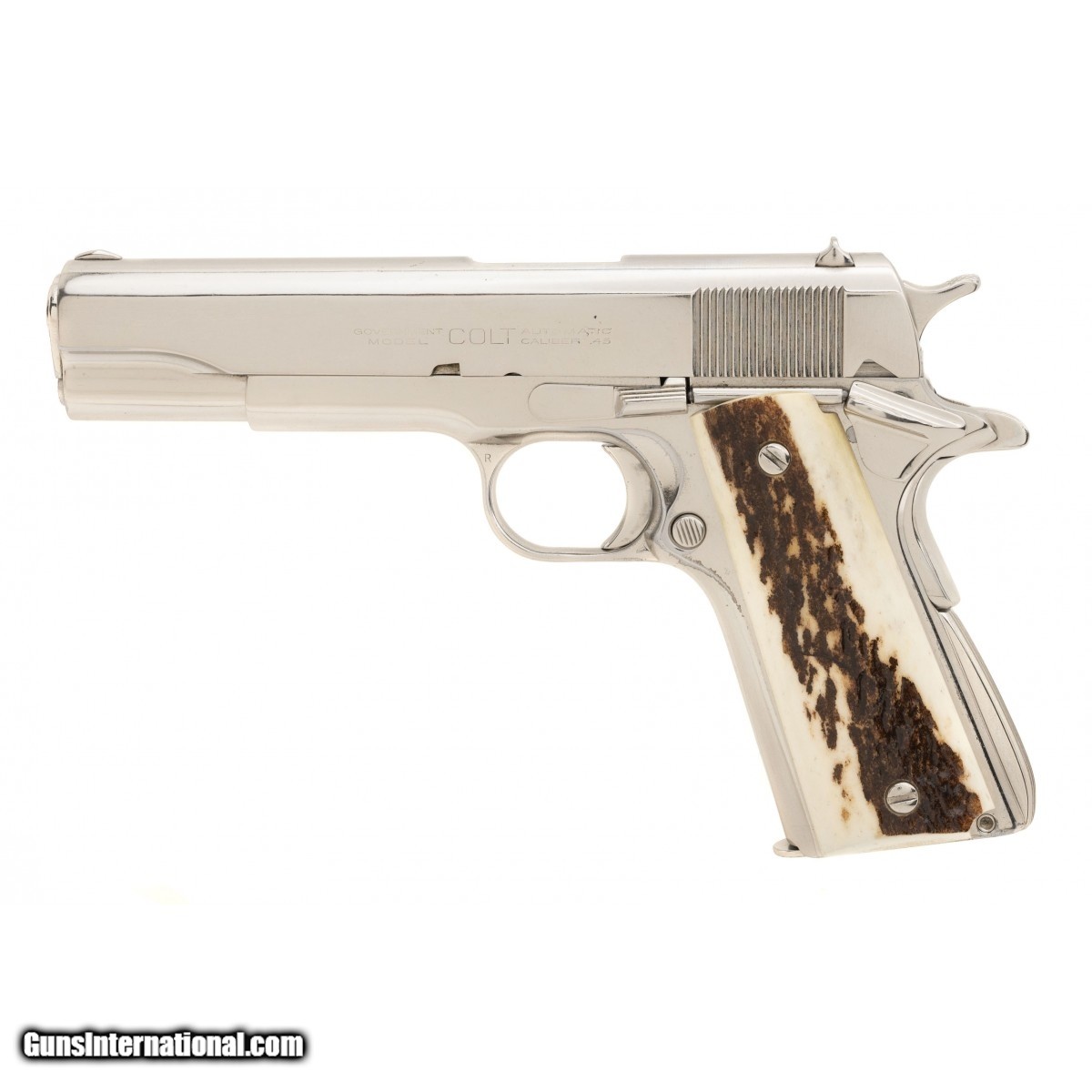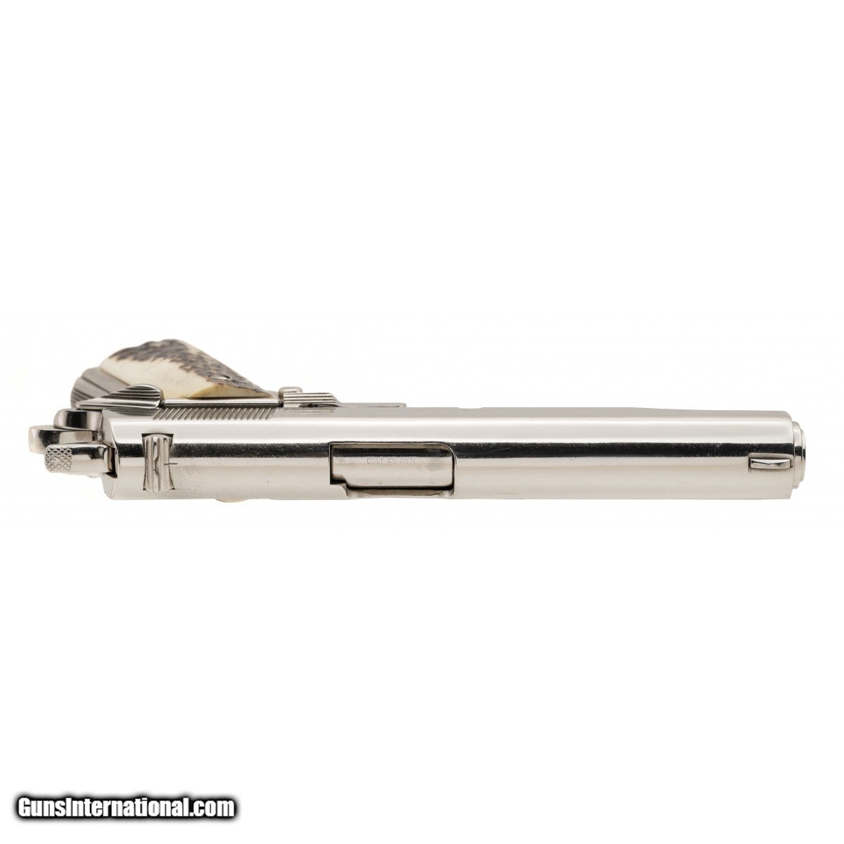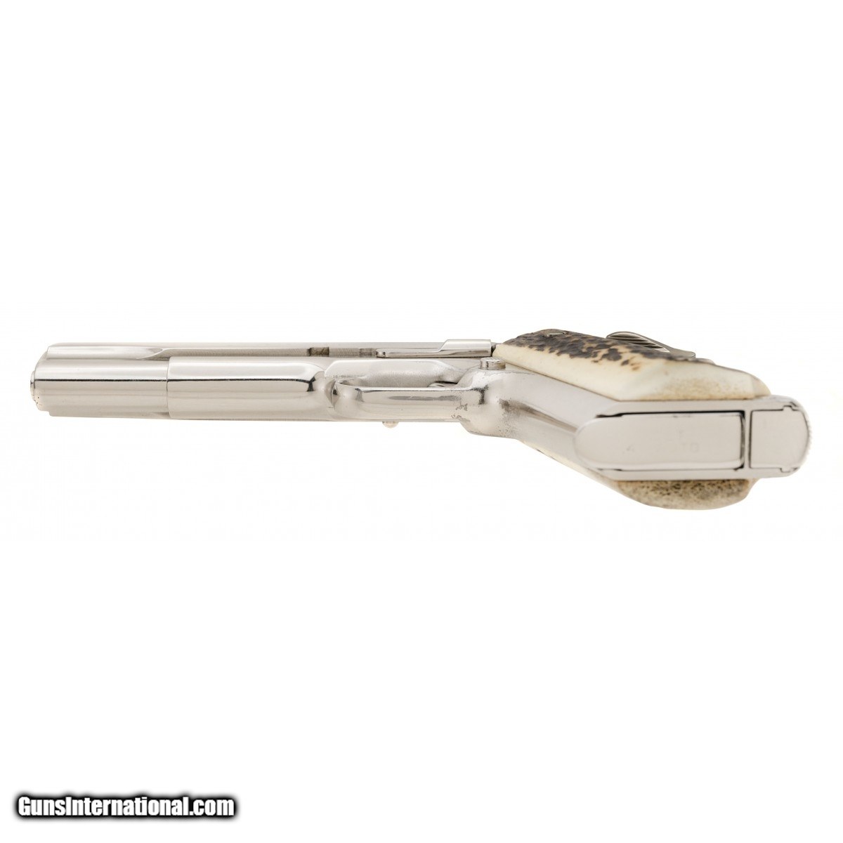 Description: " SN: 262776-C. Made in 1953, 45 ACP with a 5"" barrel. Bore and action are excellent. Has been chrome plated, looks great. Has stag grips. Overall excellent condition. SOLD Curio/Relic: Yes |