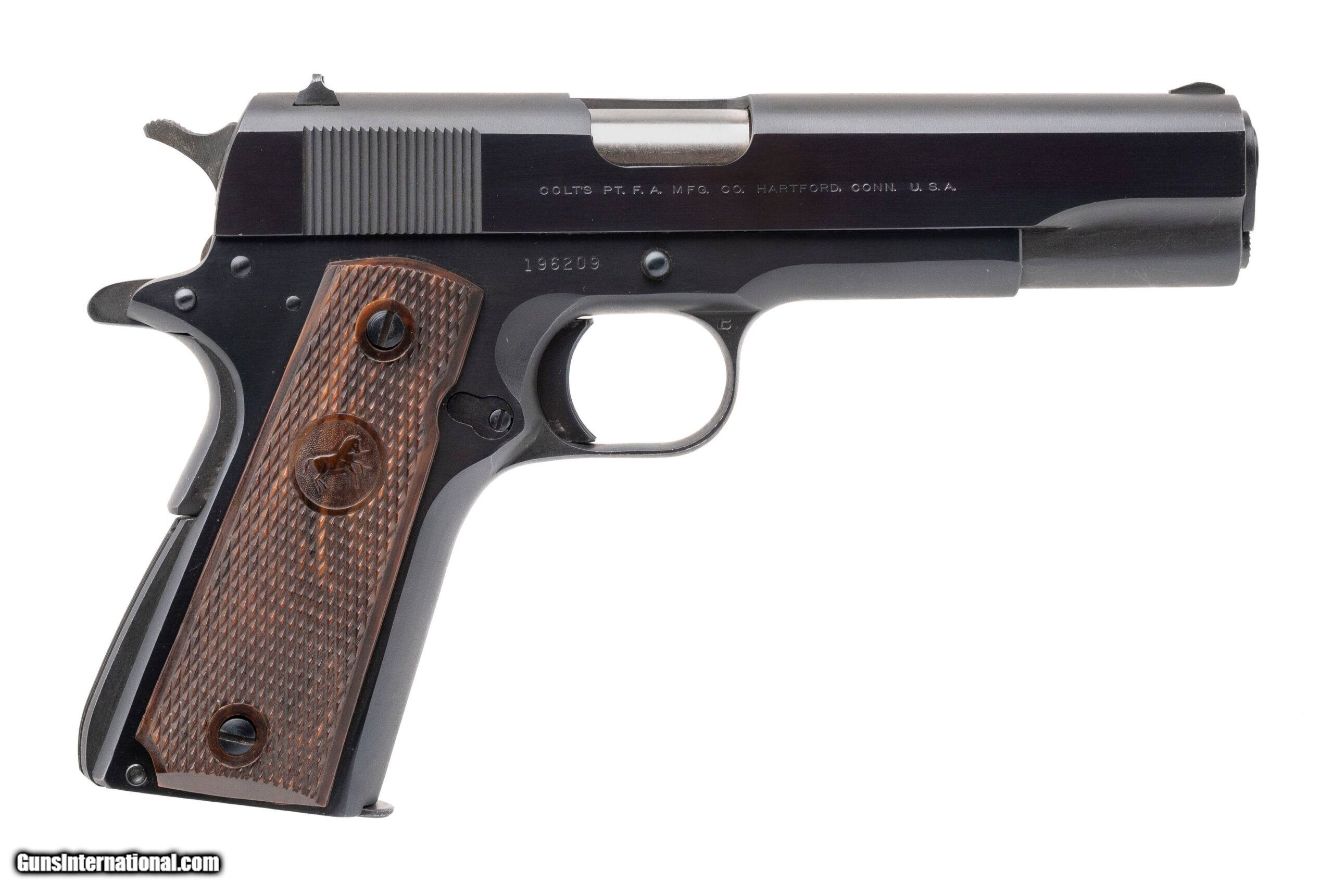 Description: "SN: 196209. Made in 1968, .38 Super with a 5"" barrel. Very desirable pre-Series 70 Super 38. Has 98% original blue with most of the wear on the grip frame. The grips are excellent with no cracks or shrinkage. Comes with the original numbered box and papers, including the 1968 sales ticket from J.C. Penney's. A great set for any Colt automatic collection. Price: $4,850.95 Contact Seller |