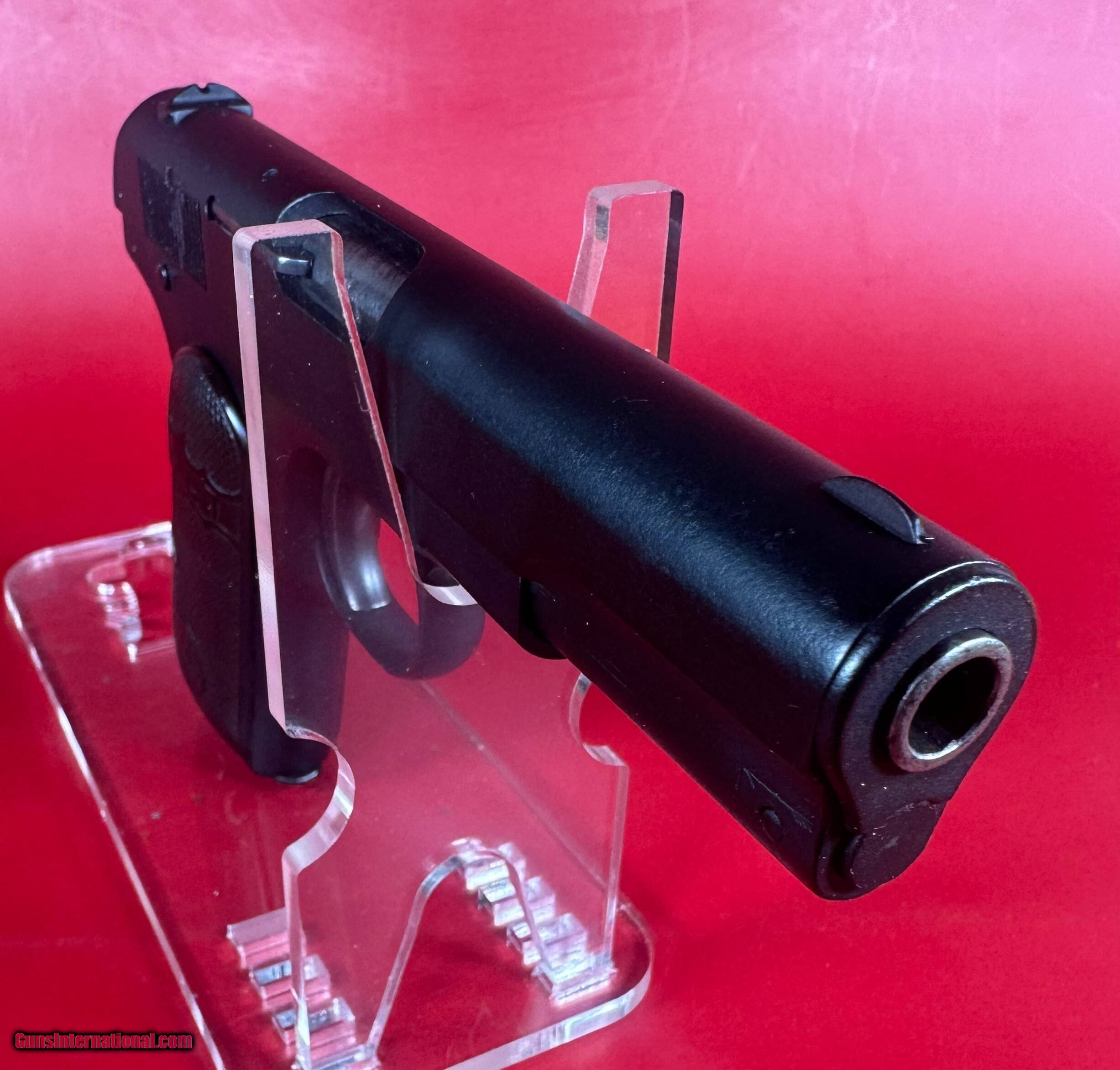 Description: 1906 Colt Model 1903 Pocket Hammerless .32 ACP 3.75" barrel. Sale includes the gun and one single tone magazine in excellent condition. The gun was refinished and retains almost 100% of it's new finish. Grips have no chips or cracks. Bright bore has strong rifling. Action works the way it should. Will make a great shooter. Don't miss it. Layaway and payment plan are available. Handgun Caliber: .32 ACP (7.65x17mm Browning SR) Price: $849.00 Shipping: $39.00 Contact Seller |