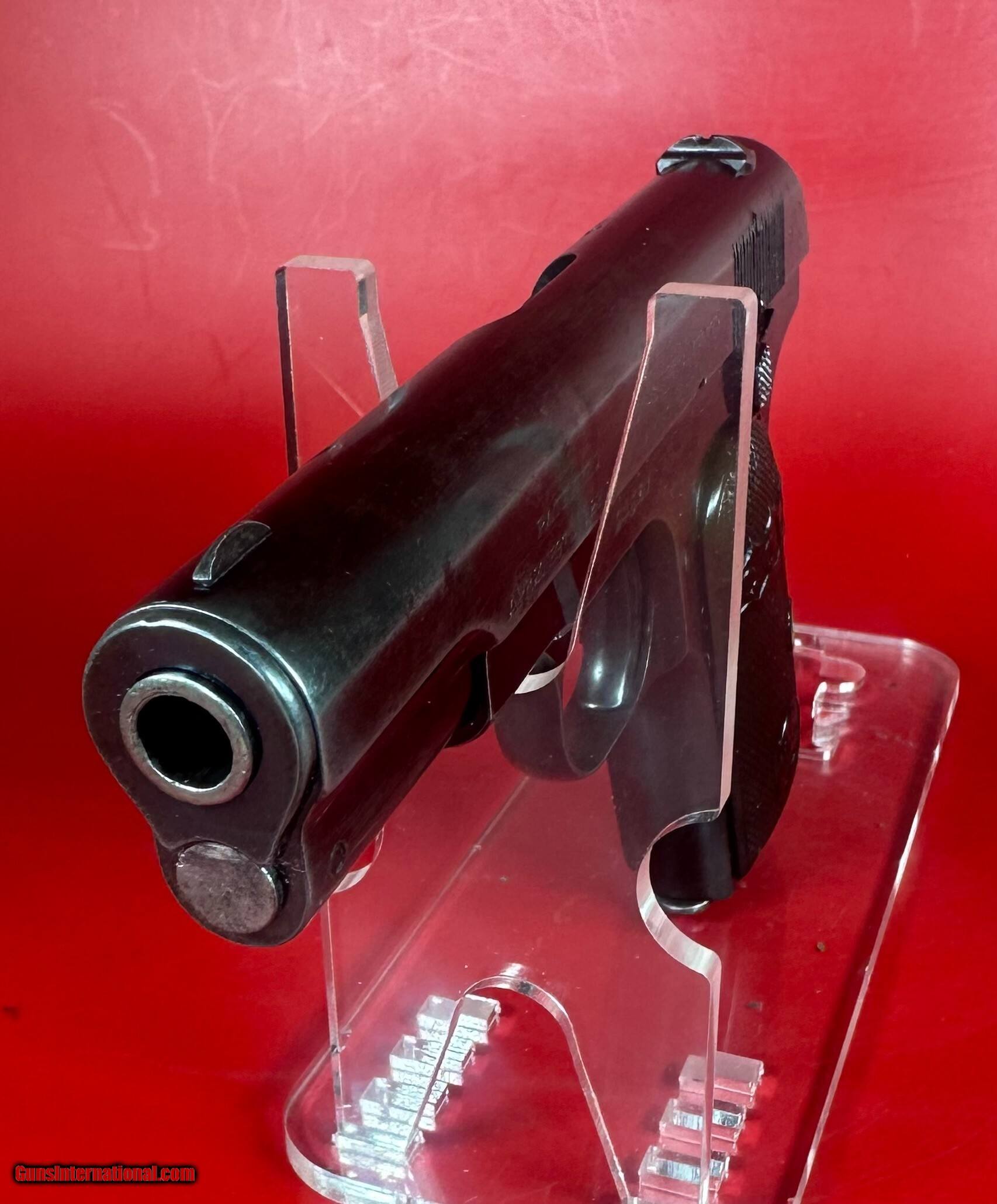 Description: 1910 Colt Model 1903 Pocket Hammerless .32 ACP 3.75" barrel. Sale includes the gun and one two tone magazine in excellent condition. Metal finish about 96%. Shiny, mirror bright bore with strong rifling. Grips don't have any cracks or chips and about 98%. Stunning gun. Please , refer to pictures. Will make a great addition to any collection. Layaway and payment plan are available. Handgun Caliber: .32 ACP (7.65x17mm Browning SR) Price: $1,199.00 Shipping: $39.00 Contact Seller |