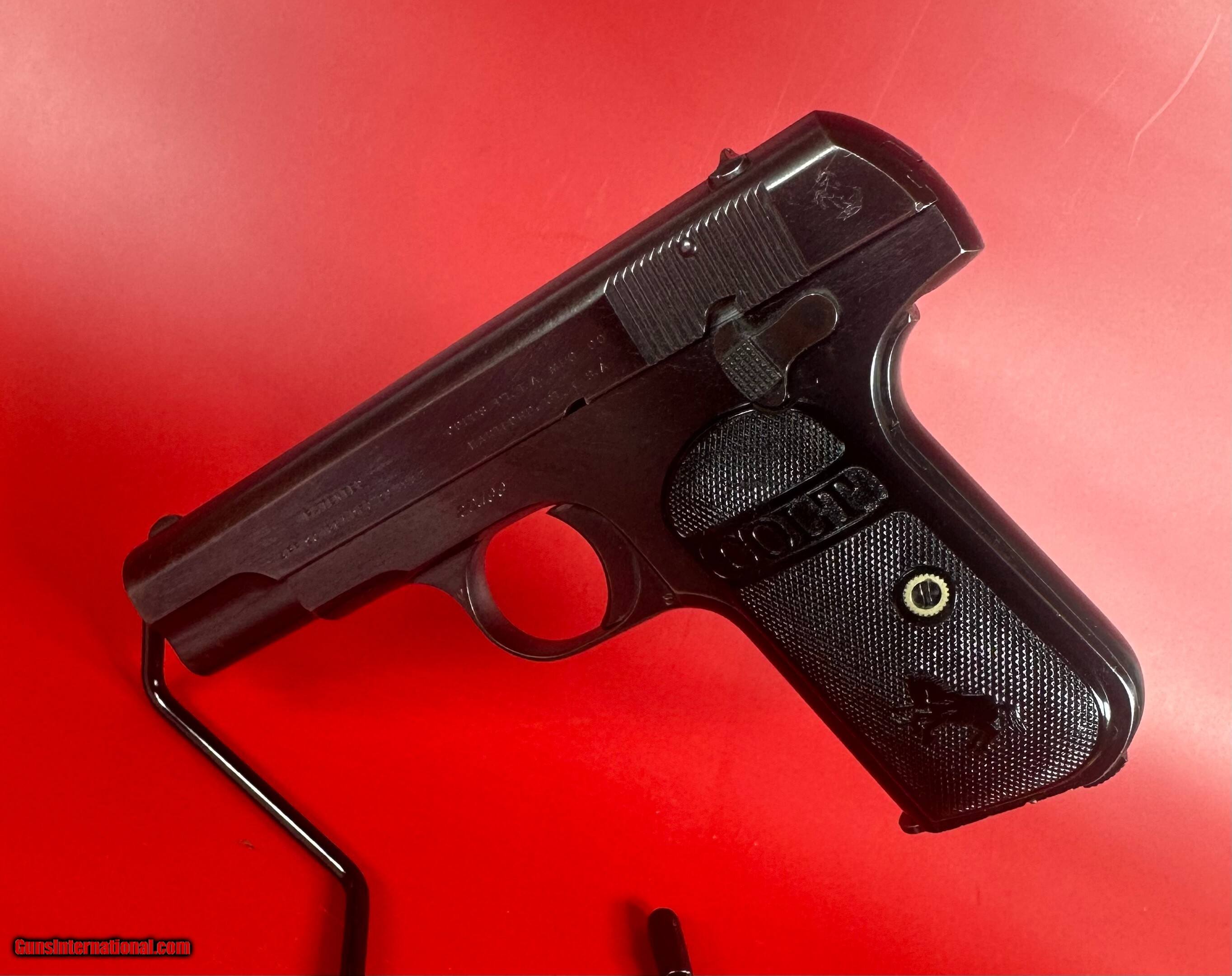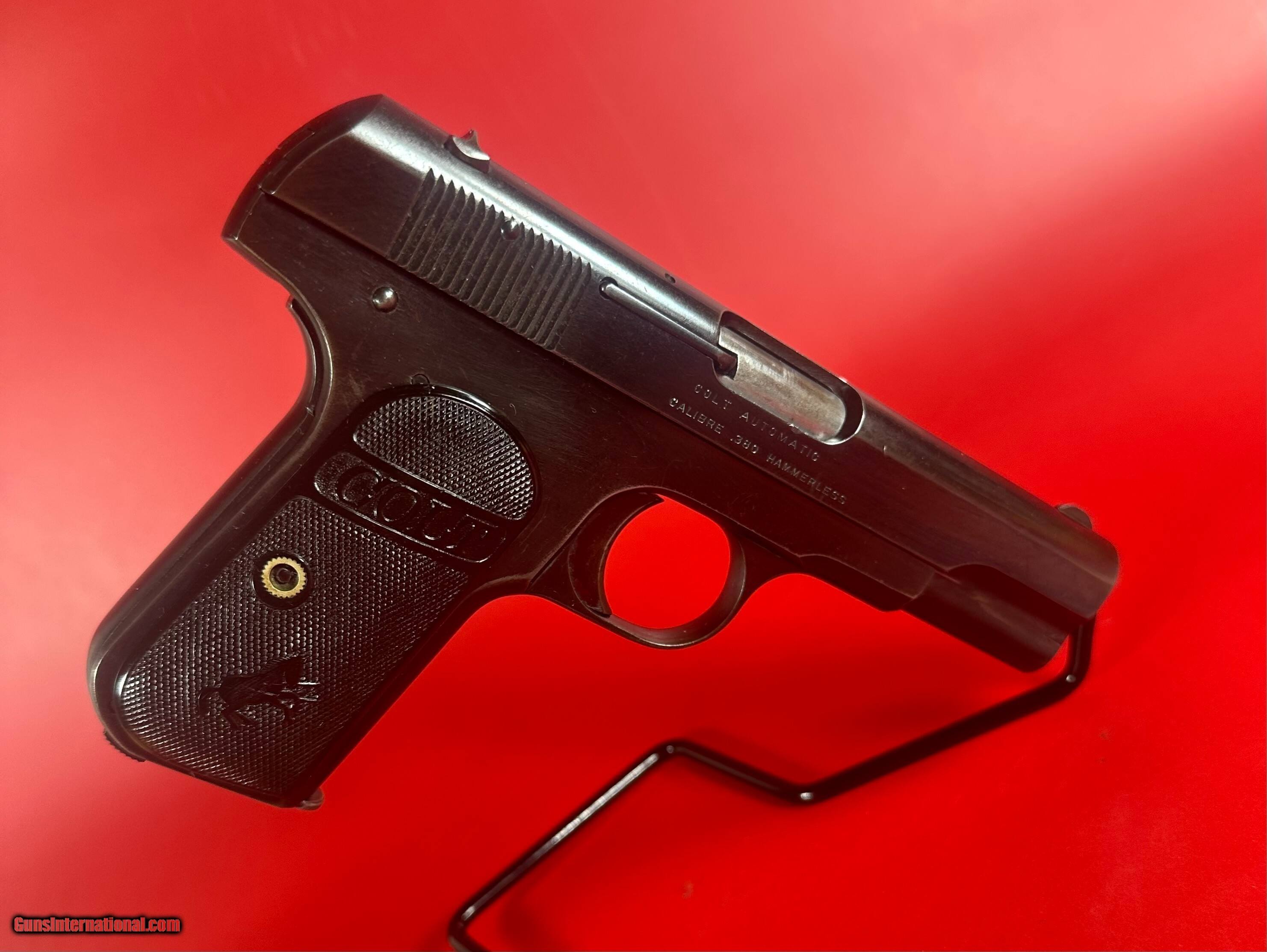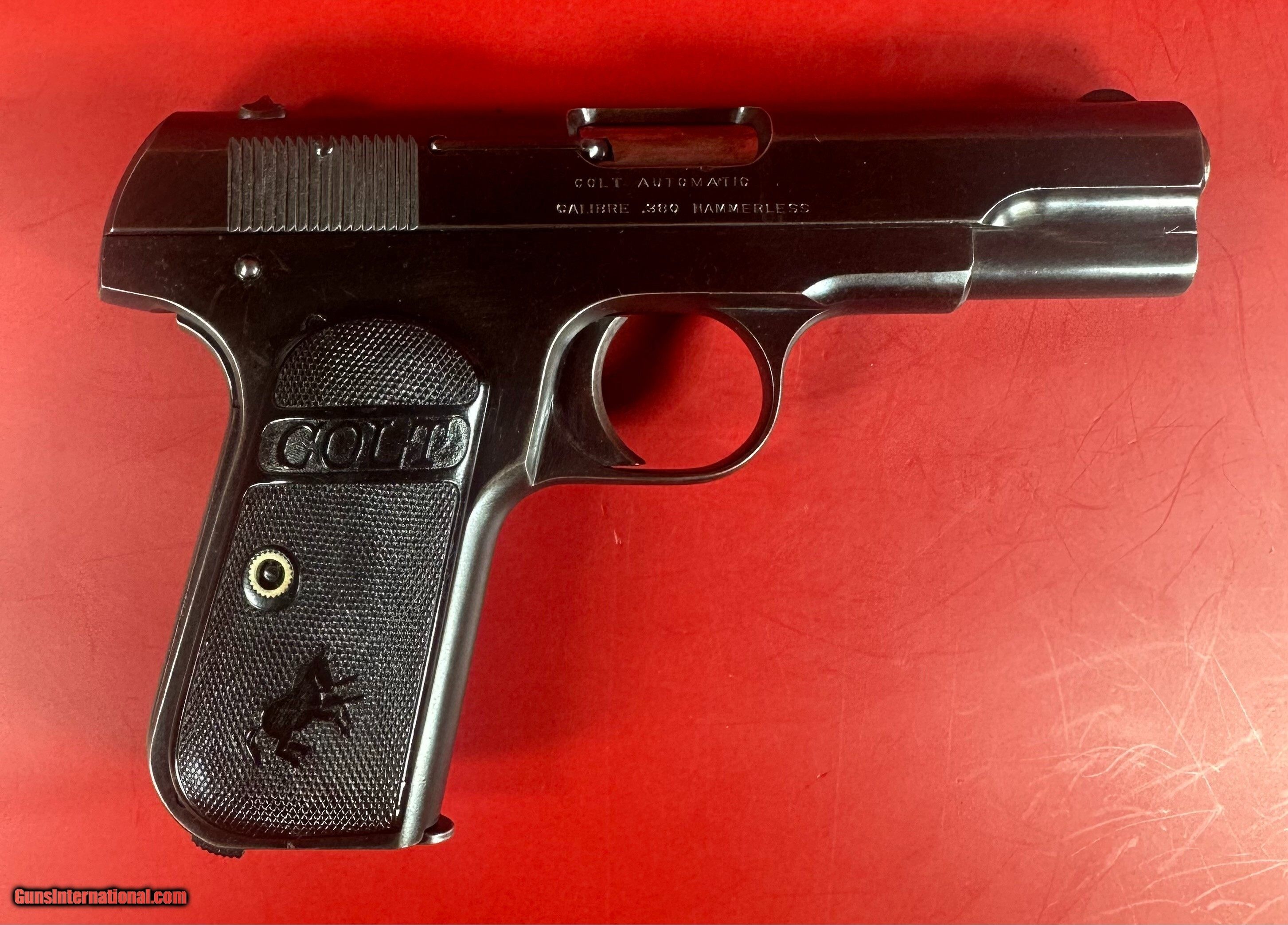 1914 Colt Model 1908 Pocket Hammerless .380 ACP 3.75". Excellent condition.