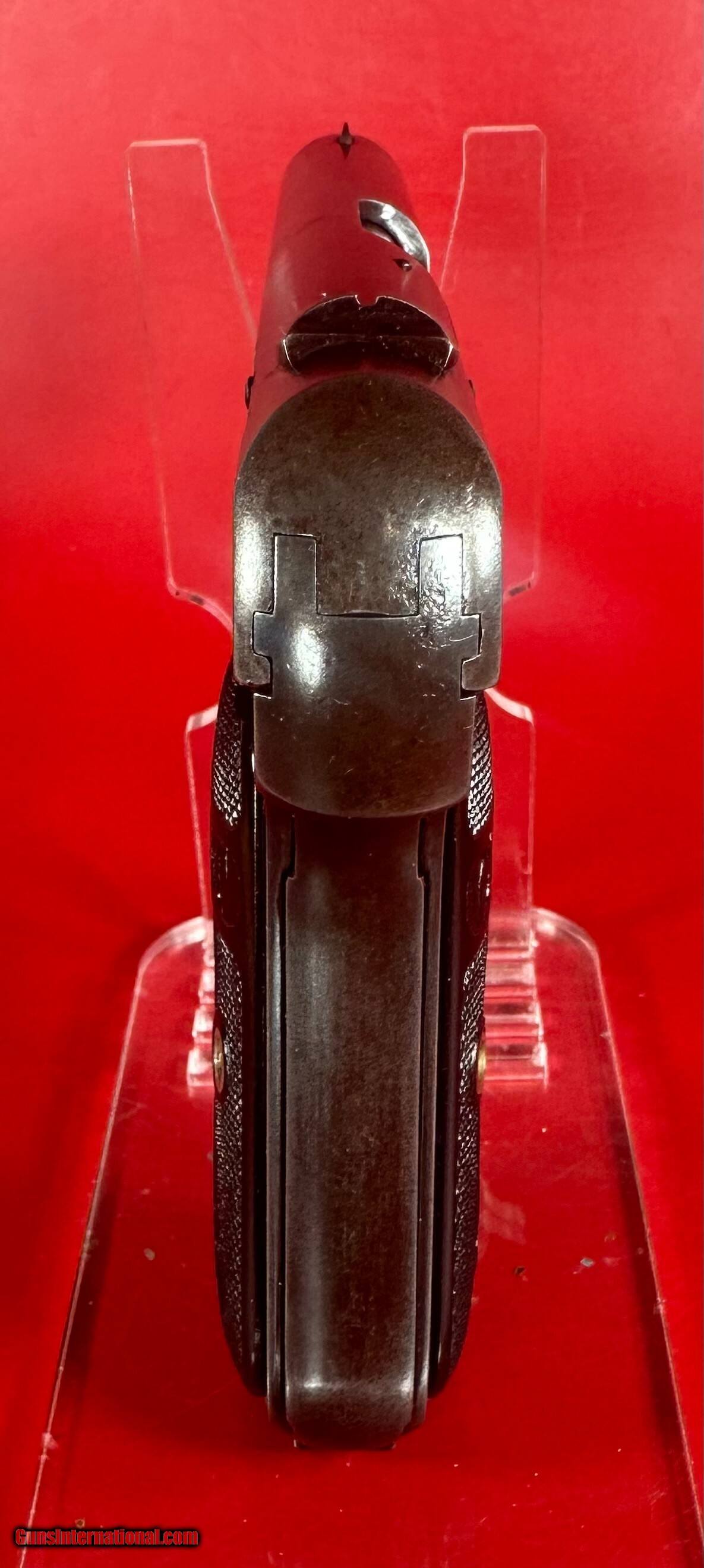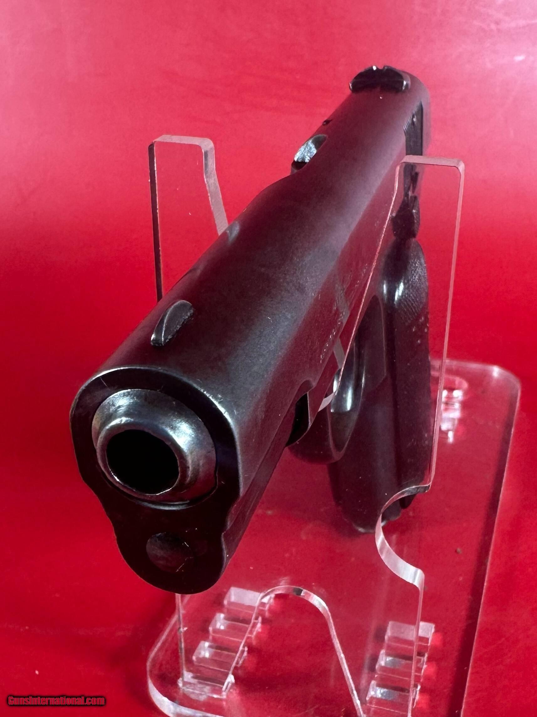 Description: 1919 Colt Model 1903 Pocket Hammerless .32 ACP 3.75" barrel. Sale includes the gun and one single tone magazine in excellent condition. Metal finish about 96%. Shiny bright bore with strong rifling. Grips don't have any cracks or chips and about 98%. Stunning gun. Please , refer to pictures. Will make a great addition to any collection. Layaway and payment plan are available. Handgun Caliber: .32 ACP (7.65x17mm Browning SR) Price: $1,199.00 Shipping: $39.00 Contact Seller |