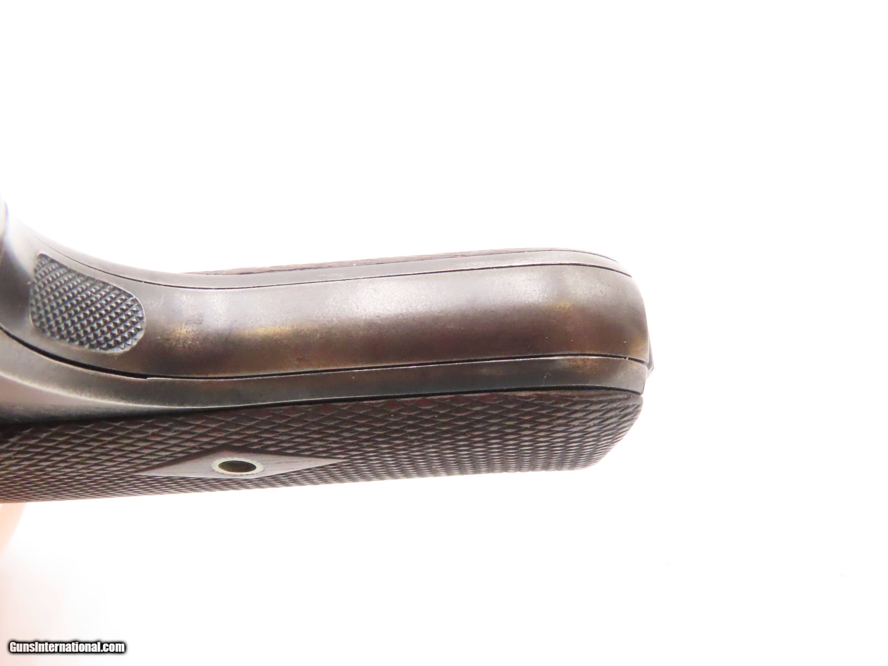 Description: 1921 mfr. COLT PRE-WOODSMAN .22 LR RF Semi-Automatic “TARGET” Pistol C&R TARGET MODEL First Series of WOODSMAN PISTOLS Here we present a C&R Colt Pre-Woodsman Pistol made in 1921 in Hartford, Connecticut. It was not until 1927 that the name “Woodsman” was used. The original Colt .22 Target Model, as is this one, was designed by John Moses Browning prior to production beginning in 1915. There were three series of Woodsman pistols with the first series being referred to as those built on the frame used prior to and during World War II. The second series were those built on the second frame during a span between 1947 and 1955. The third series was the third frame design that began in 1955 until production ended in 1977. Each series had a Target Model, a Sport Model, and a Match Target Model. All models were very similar in most aspects. For example, the Sport Model is basically a Target Model with a shorter barrel and maybe different sights, and the Match Target Models again were nearly the same but with a beefier barrel. In the post war years, Colt produced three very similar economy models. They were the Challenger, Huntsman, and the Targetsman. The actions on these economy models were the exact same internally to the higher end models of the same period, lacking only in some of the “refinements”. Because these guns were not assembled in a strict numerical sequence, there is no exact serial number dividing line. Thus, serial number overlaps numbering in the thousands are common. The overall condition is very good. Original blue finish. The action is excellent. The bore is bright with nice rifling. The grips are solid. Own the Original! This firearm is classified as a Curio & Relic. Barrel is 6-1/2 inches. Caliber: .22 Long Rifle Rimfire Overall condition as seen in photos. Very Fast. Very Safe. FREE SHIPPING. Will need to be sent to your local FFL or C&R licensee. This firearm is classified as a Curio & Relic. Guaranteed AUTHENTIC & Includes CERTIFICATE OF AUTHENTICITY. ancestryguns $1200 #256108 SOLD Curio/Relic: Yes |