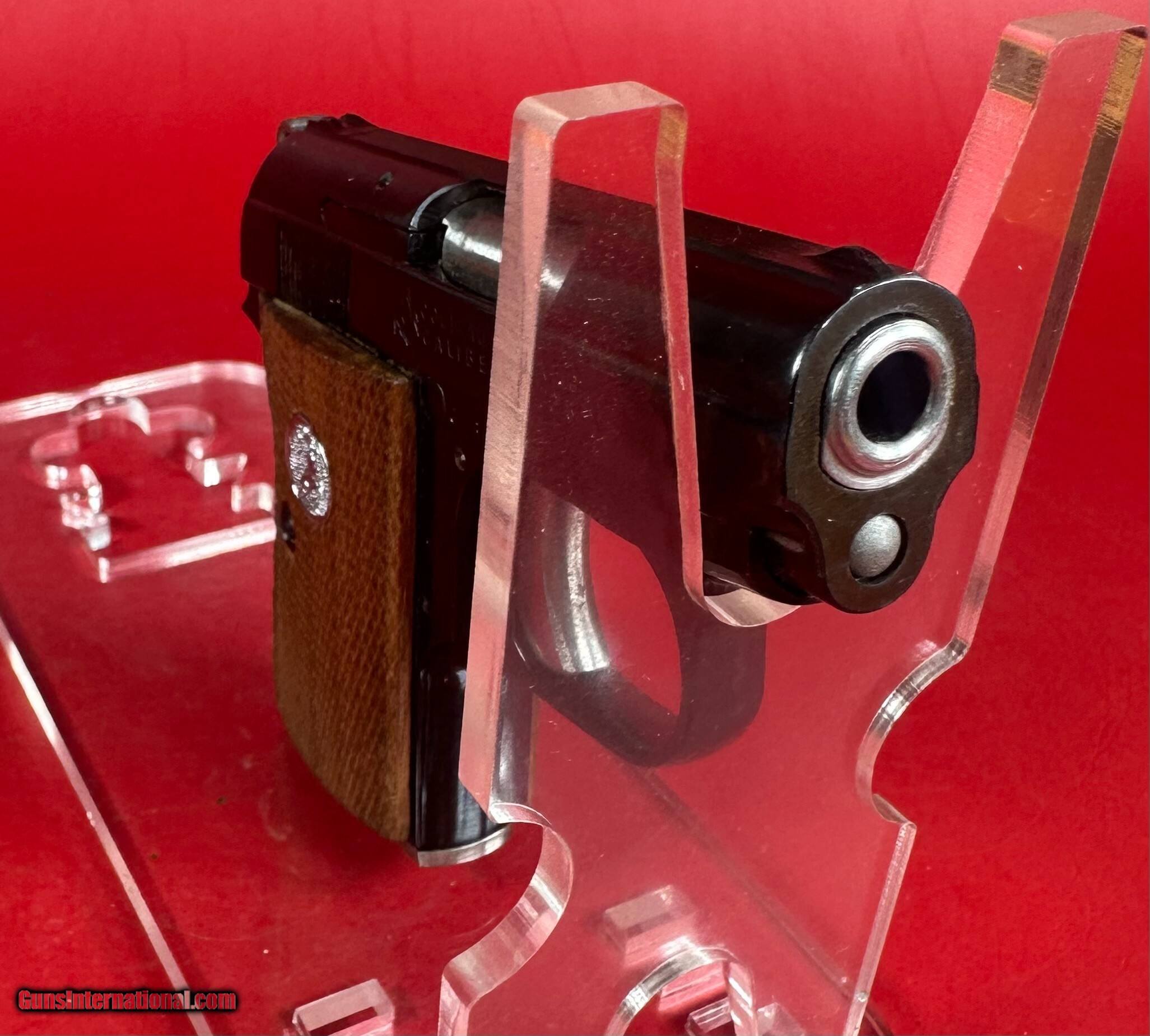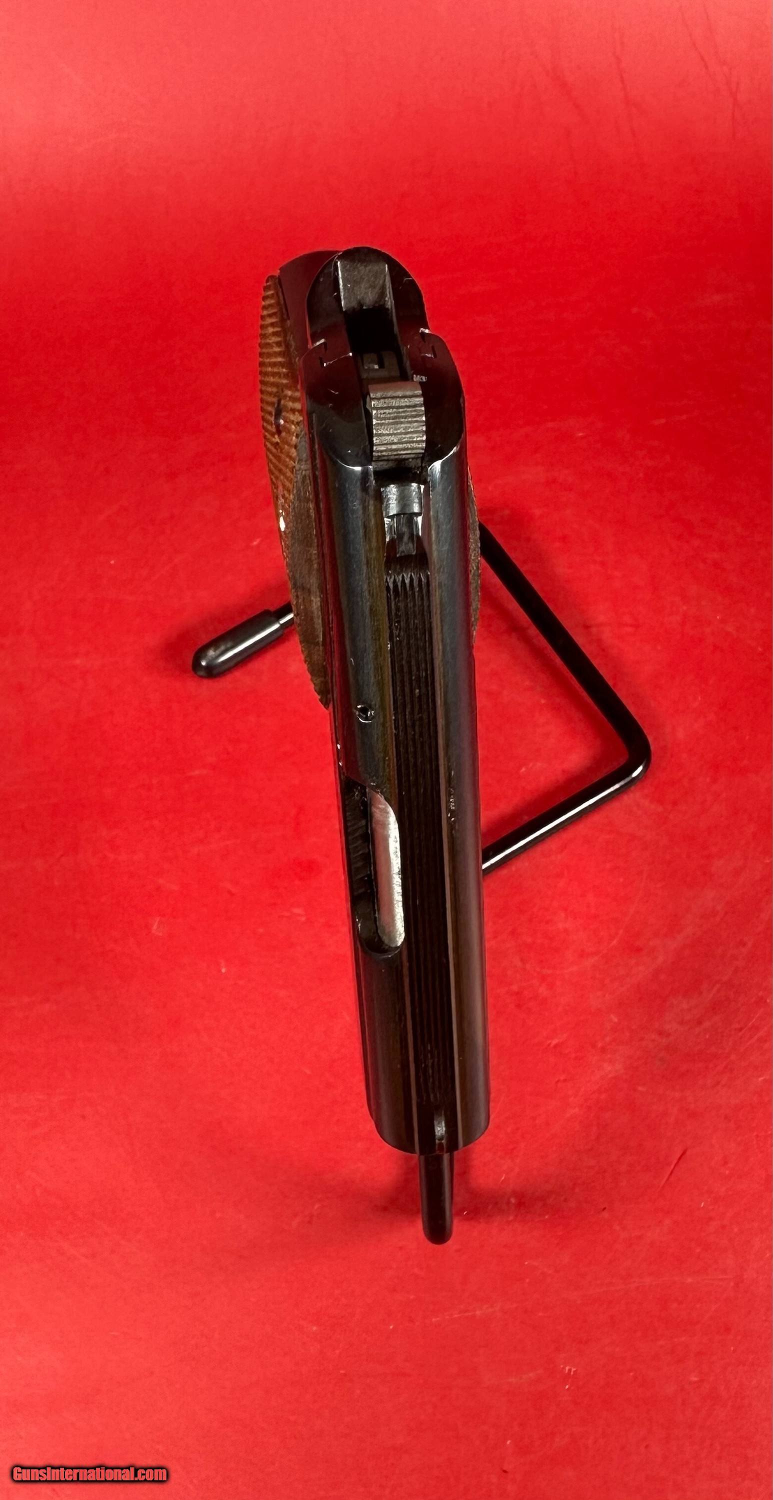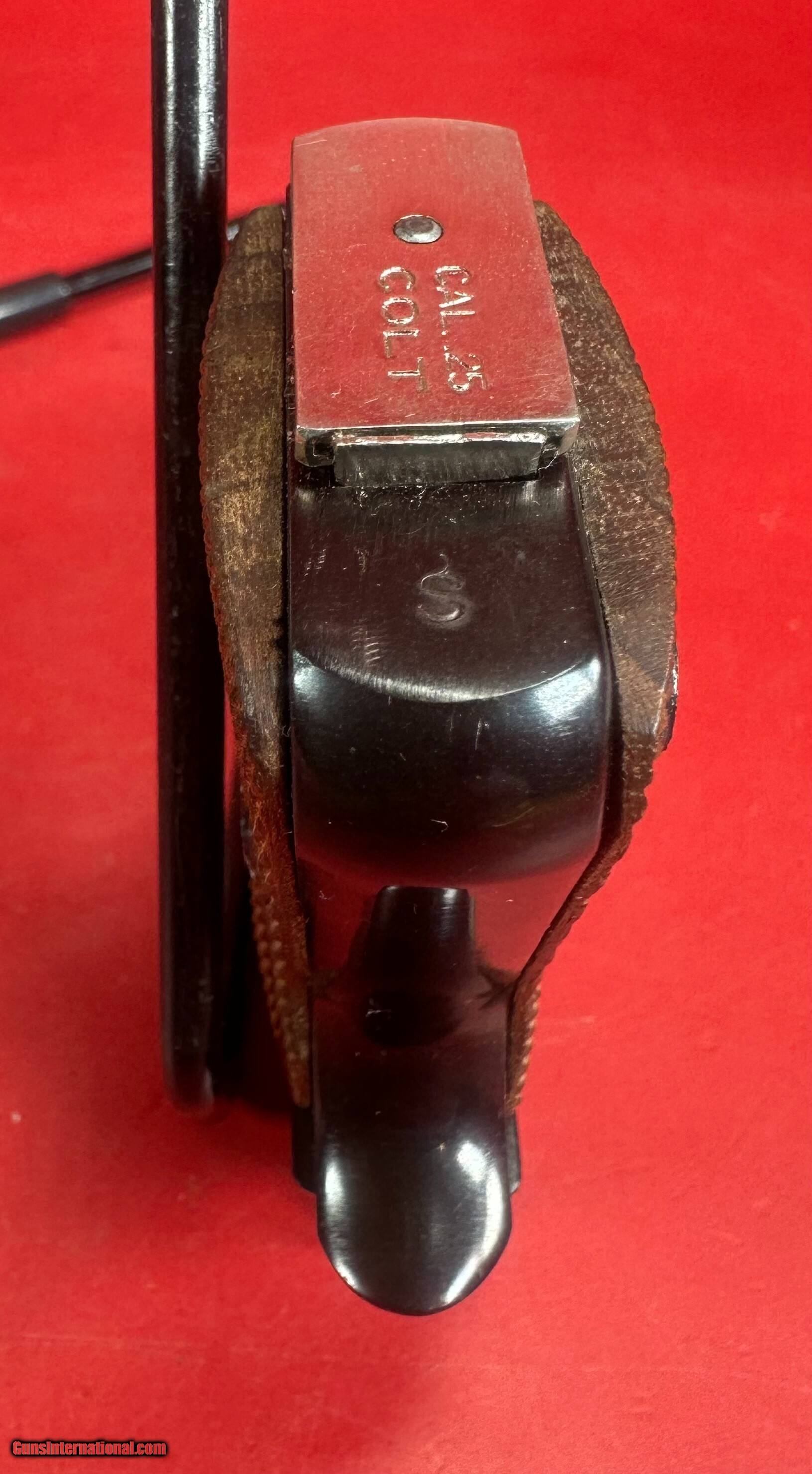 Description: The Junior was a small pistol aesthetically influenced by earlier Colt designs, introduced in 1954. Colt introduced the Junior in 1957, with production beginning in 1958. Production continued, with over 40,000 pistols made, until 1968, when the Gun Control Act halted importation of non-sporting firearms. With the Florida-based company Firearms Import & Export (FIE) importing Spanish parts to assemble in the US. Production resumed between 1970 and 1972. The Spanish-made guns have a ‘CC’ serial number suffix, while the American-assembled Juniors have ‘OD’ prefixes. In 1973, Colt discontinued sales of the Junior. This example was built in 1973. The gun comes with one original magazine, box serialized to the gun, manual and other paperwork. Bluing is at about 99%. Bore is shiny with strong rifling. Grips are very good with no cracks or damage, about 99%. Over all excellent condition, please refer to pictures. This gun will be a great addition to any collection, or could be used as a concealed carry weapon. SPECIFICATIONS: Manufacturer: Colt Model: Junior Pocket Year: 1973 Caliber: .25 ACP Finish: Blue Barrel Length: 2 1/4" Optics/Sights: Fixed Stock/Grips: Fully Checkered Walnut with Colt Medallions Action: Semi-Auto Markings: Standard Layaway and payment plan are available. Handgun Caliber: .25 ACP (6.35mm Browning, 6.35×16mmSR) Price: $999.00 Shipping: $39.00 Contact Seller |