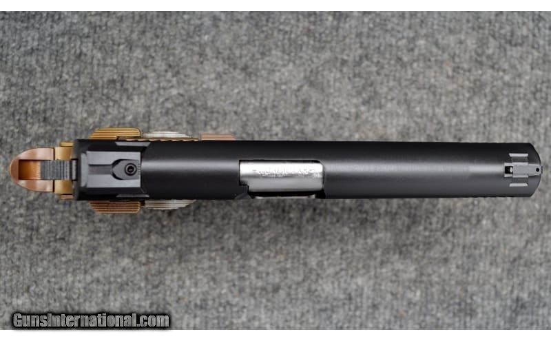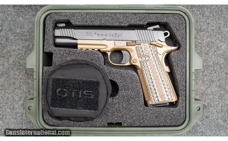Description: For your consideration, a Colt M45A1 chambered in .45 Auto. This piece is a commercial production of the USMC's M45A1 CQBP. Features include G10 grips, ambidextrous safety levers, a railed frame, forward cocking serrations, and a national match barrel. Sighting consists of a set of Novak-type tritium night sights by Night Fision. The frame's finish is a highly durable "Decobond" ion bond-type PVD coating. This is a new firearm straight from the manufacturer. .45 Auto SOLD Metal Condition: NIB Wood Condition: NIB Barrels: 5 Triggers: Serrated Fore End: Railed Weight: 2.25 lbs Sights: Iron Sights Item Location: Hamburg, PA |