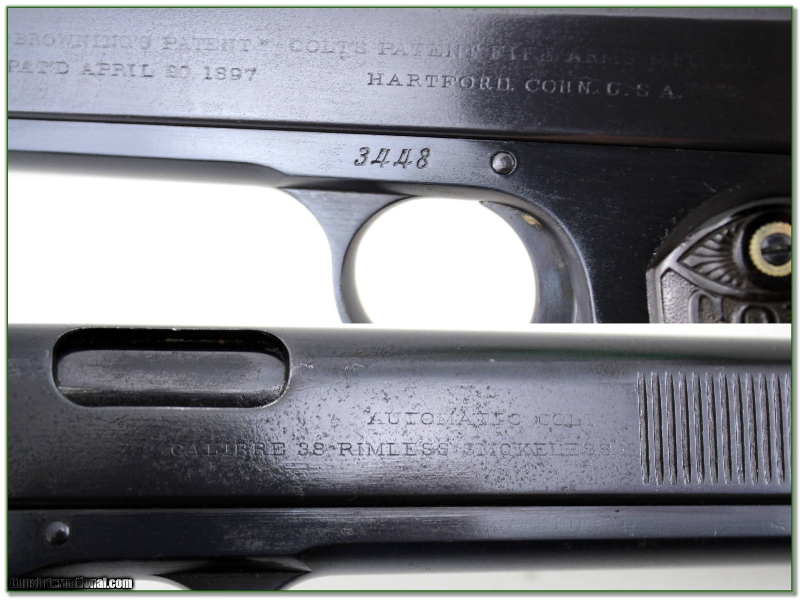 Description: Collectors, this is an all-original, collector quality and rare Colt 1900. It is serial number 3448 of 4274 ever made. So it was mostly likely made in 1902. It will be hard to find another all original one as nice as this one. It has only very light freckles on the slide. It’s owner said that developed over the last 20 years while stored in his safe. It will make a prized addition to your collection. I am selling this one on consignment and as such lay-a-way can’t be used. It does of course have the standard 3-day inspection. Shipping and insurance is $159. Please email me with any questions or larger pictures. (Consign your quality firearms with Shooting Investments for only 12%! Let me know if you have any you would like to sell!) 21-1741 Payment: Payment is by Money Order, Cashier’s Check or Personal Check. I can now also accept Credit Cards (MasterCard, Visa, Discover & American Express) with a 3% convenience fee. Shipping: The shipping charge will be listed in each description. It is $49 for most firearms. Some heavy guns or those insured for over $2000 will be higher. Shipments to Alaska and Hawaii are higher because air shipment is required. Most firearms are shipped on Tuesday and Thursday and usually in 5 days of receipt of payment. We package all shipments carefully and insure them. Optics are shipped Priority Mail and most other non-firearm shipments are shipped First Class. Returns: Our return policy is simple. If for any reason you are not pleased with your purchase, you may return your item for a full refund of purchase price. Ammunition cannot be returned. It is important to us that you are happy. Guns cannot be fired or dissembled before returning them and they must be returned in the same condition as received. Notification of a return must occur within 3 days of receipt at your dealer. Shipping, convenience and dealer fees are not refundable and are the responsibility of the buyer. Lay-a-way: If needed, we offer a 60 day lay-a-way option on most firearms. It is 1/3 now, 1/3 in 30 days and 1/3 in 60 days. Lay-a-way firearm sales are final and cannot be returned. If a lay-a-way is not completed the first payment cannot be refunded. Consigning your firearms with Shooting Investments: We will help you get top dollar for your firearms. While most local guns shops charge 20% or more, our fee is only 12% with a minimum of $75. At your local gun shop it might take months to sell. Selling on-line provides instant access to thousands of interested buyers. You won’t find any other on-line dealer willing to sell your firearms for only 12% or listing every gun on 3 separate s. Selling through an House typically costs the seller 15% and the buyer an addition 15% (so 30%) and you have to wait several months to sell and longer to receive funds. If properly priced, we will sell your firearms within a few weeks. Send us an email or give us a call and we’ll explain how easy it is for you to get top dollar. Trading: Trading for us is really just buying your gun to re-sell. If you have a gun you want to trade, please email a picture and we will let you know what we can give for it. You will always get more if we sell it for you on consignment. SOLD |