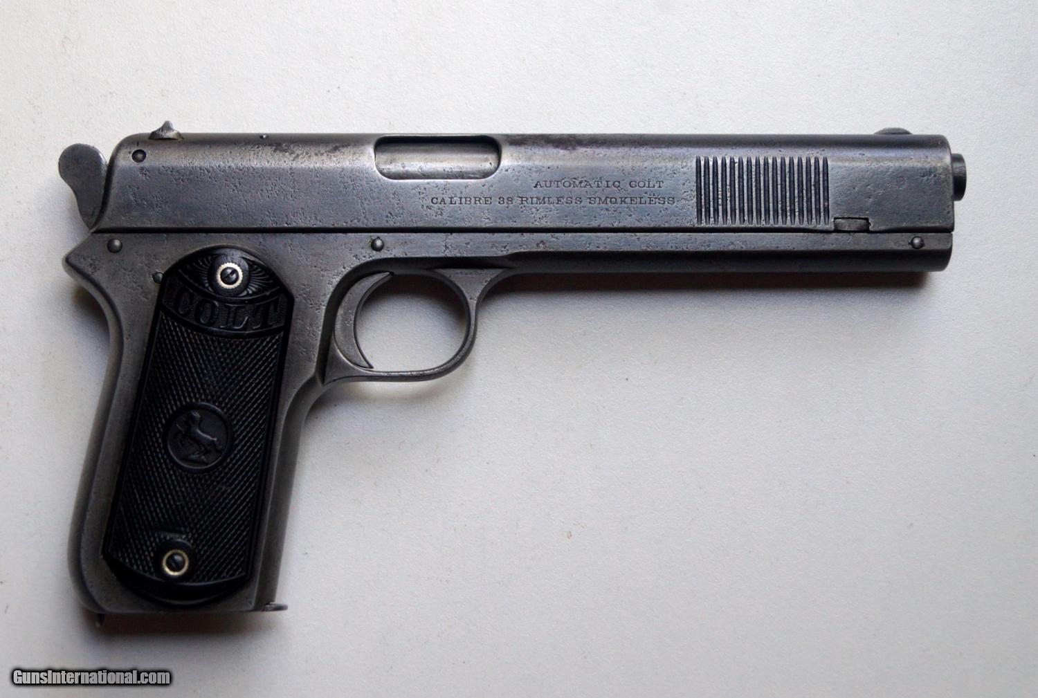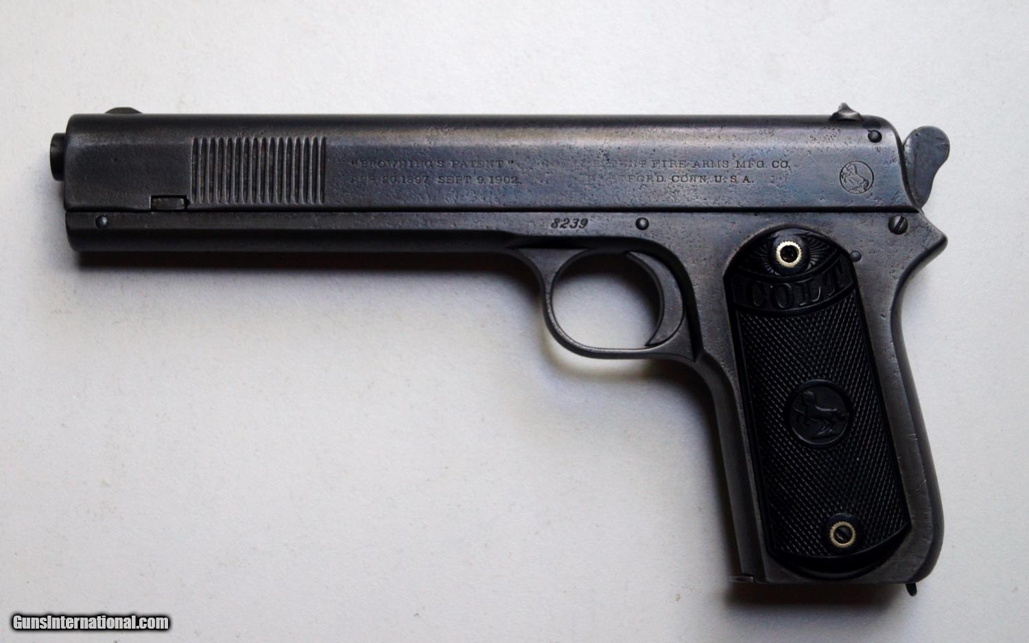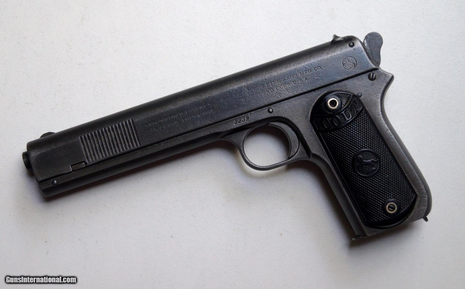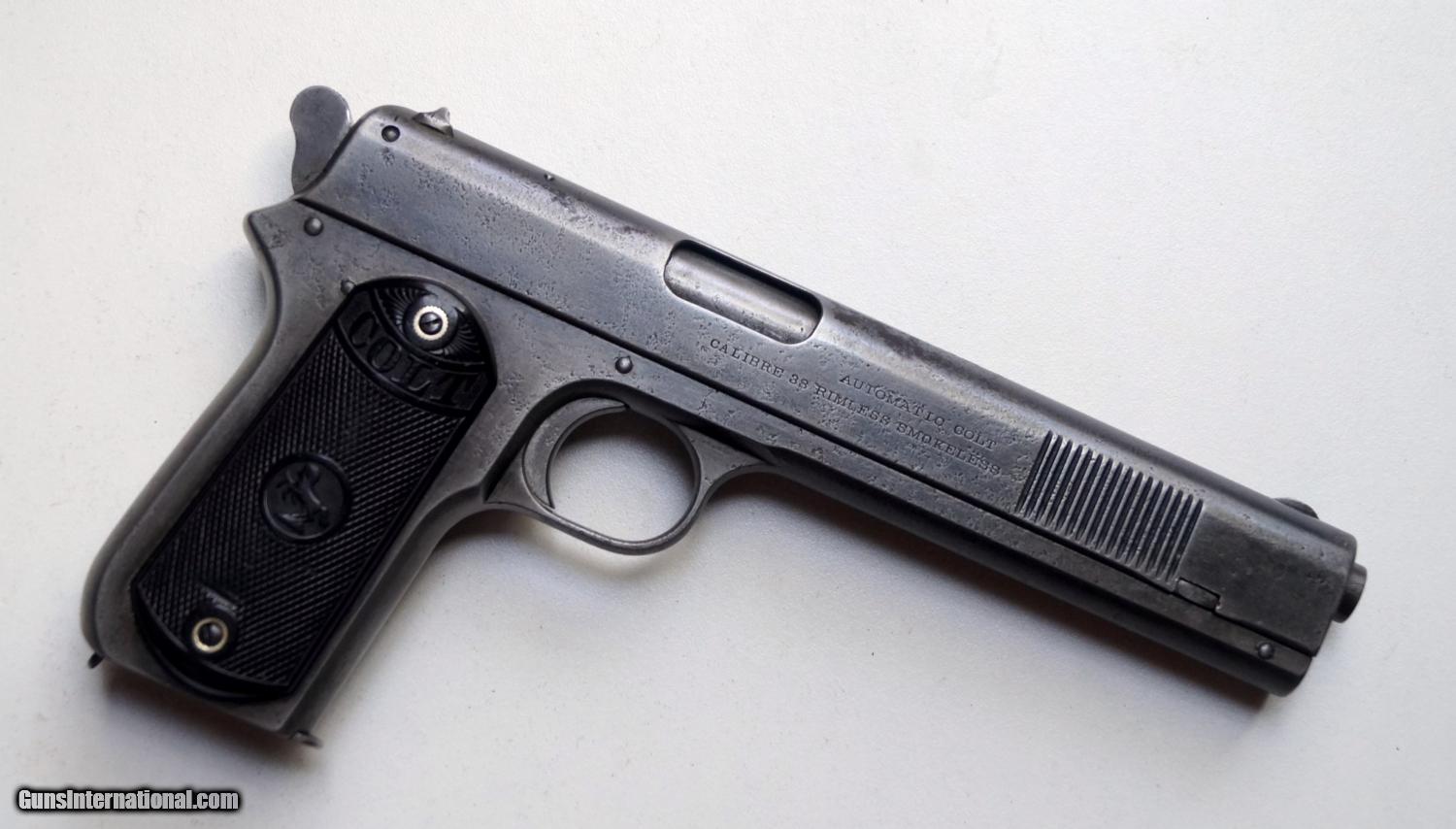 Description: THIS IS A 1902 COLT SPORTING, .38 ACP. THE GUN IS IN GOOD CONDITION, ALL ORIGINAL, NUMBER MATCHING, VERY GOOD BORE AND GRIPS, MECHANICALLY CORRECT AND TIGHT. A VERY NICE 1902 COLT WITH THE LONG 6" BARREL AND FRONT SLIDE CHECKERING. NOTE: THE GUN COMES WITH A LETTER OF AUTHENTICITY FROM THE COLT ARCHIVES. SOLD Curio/Relic: Yes |